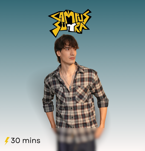 Grey And Cream Waffle Checked Textured Relaxed Fit Casual Shirt