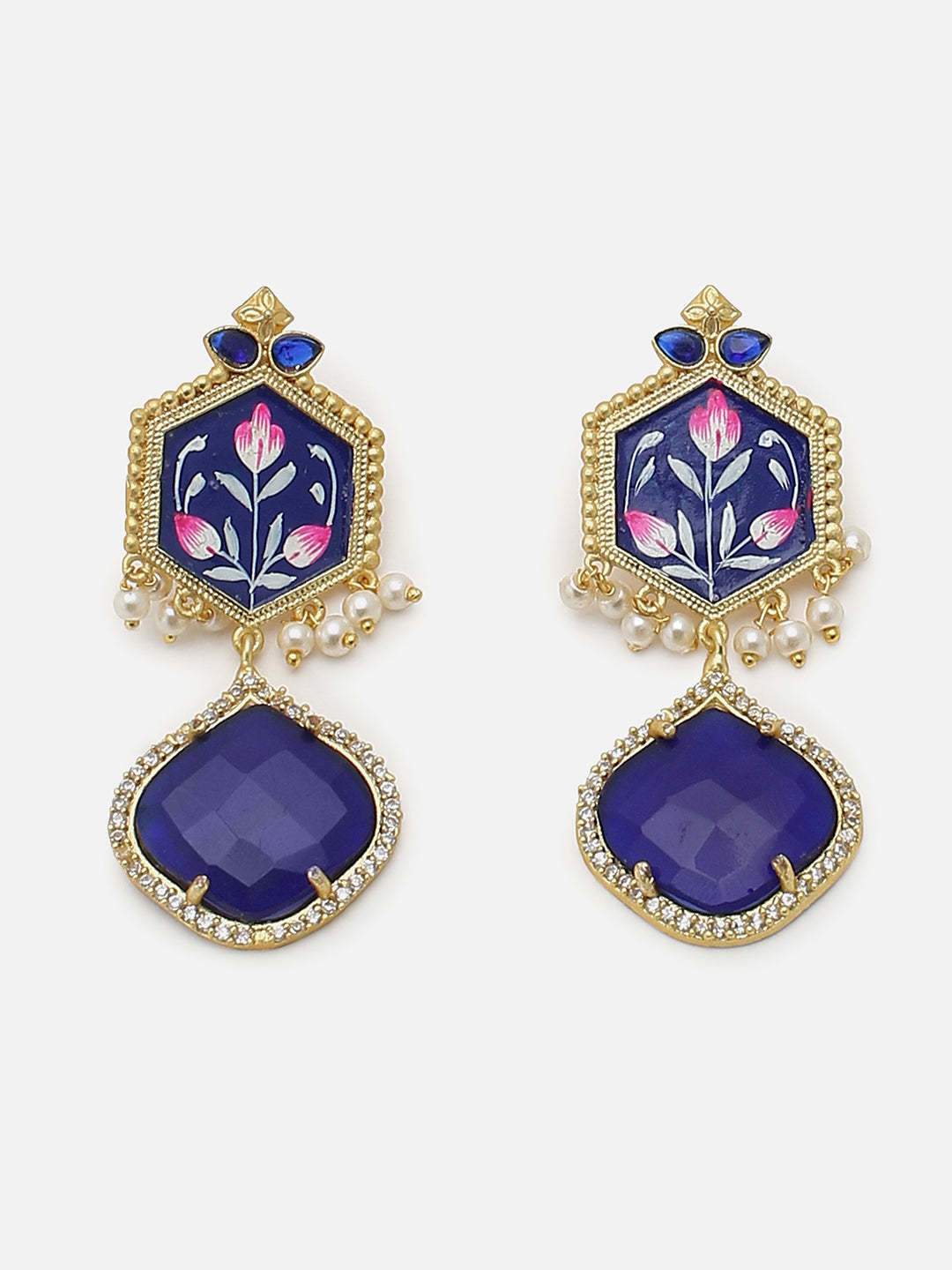 DESIGNER BLACK & BLUE TRENDY GOLD PLATED DROP EARRINGS FOR WOMEN & GIRLS