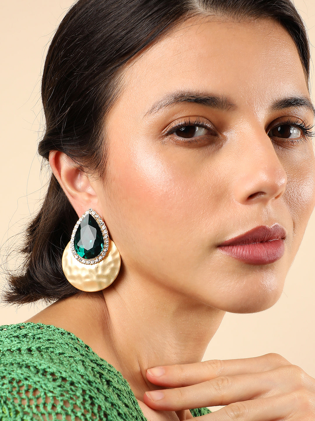 Green Stone Gold Plated Drop Earring
