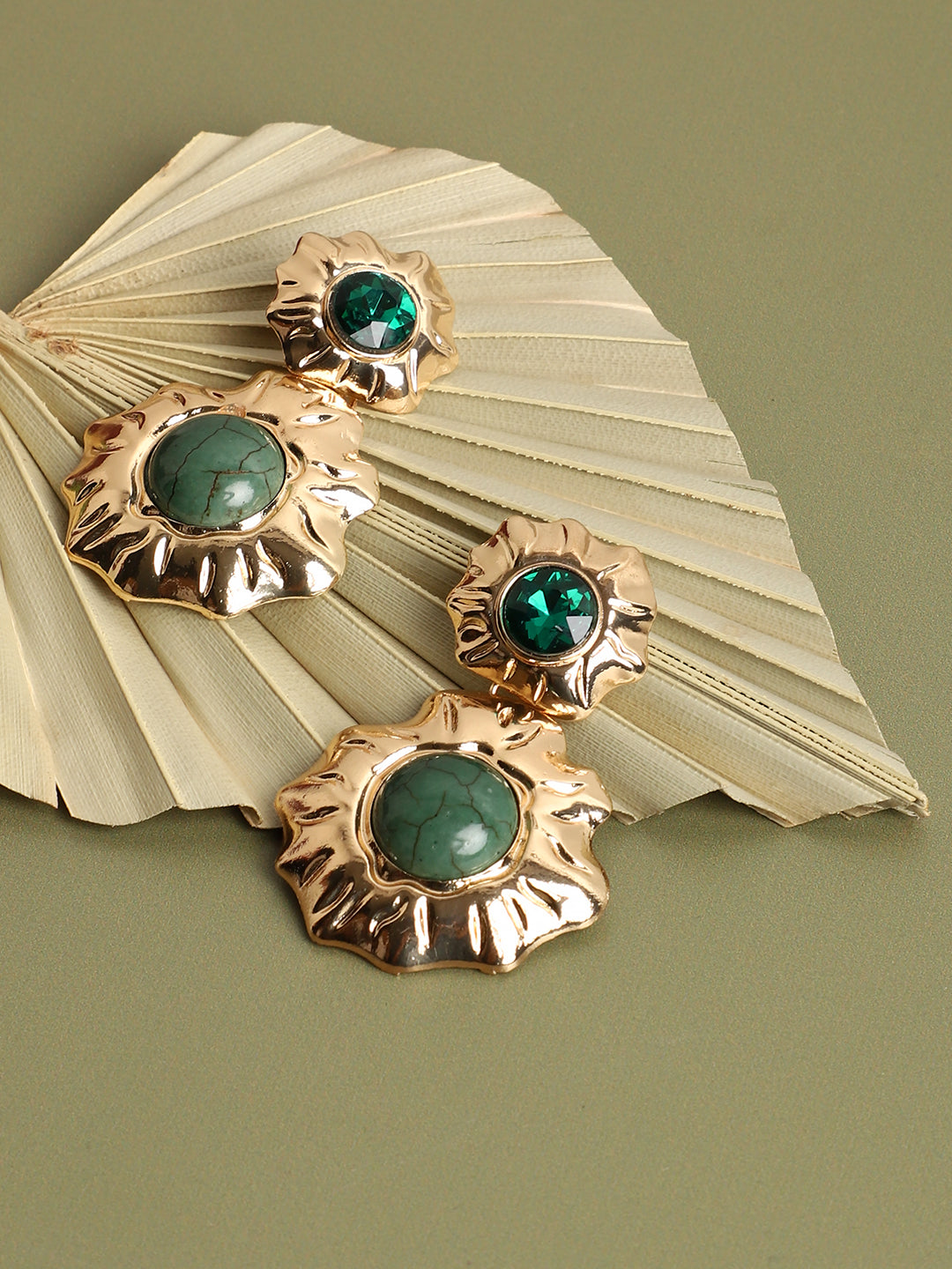 Green Stones Gold Plated Designer Drop Earrings