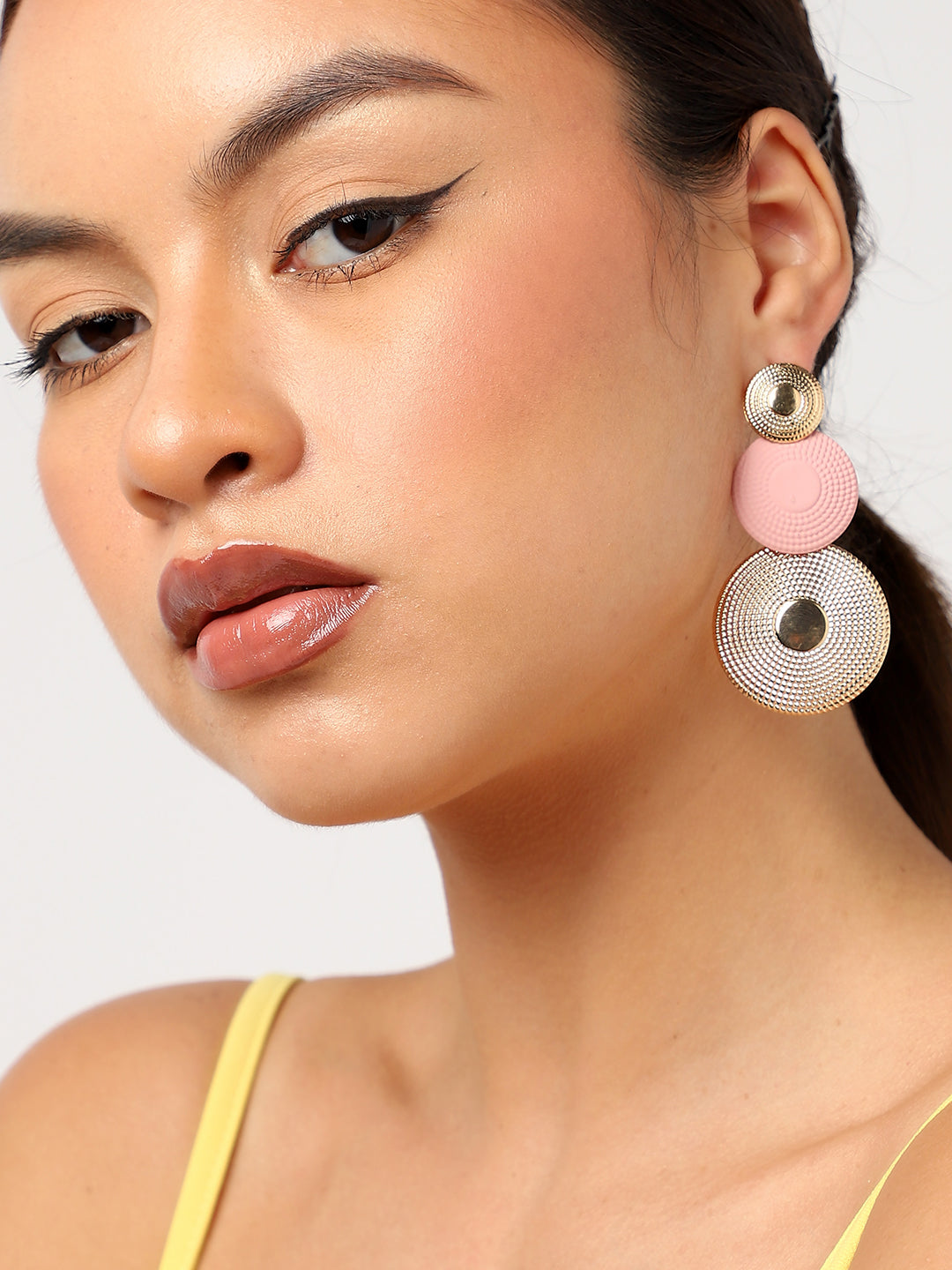 Gold Plated Pink Drop Earrings