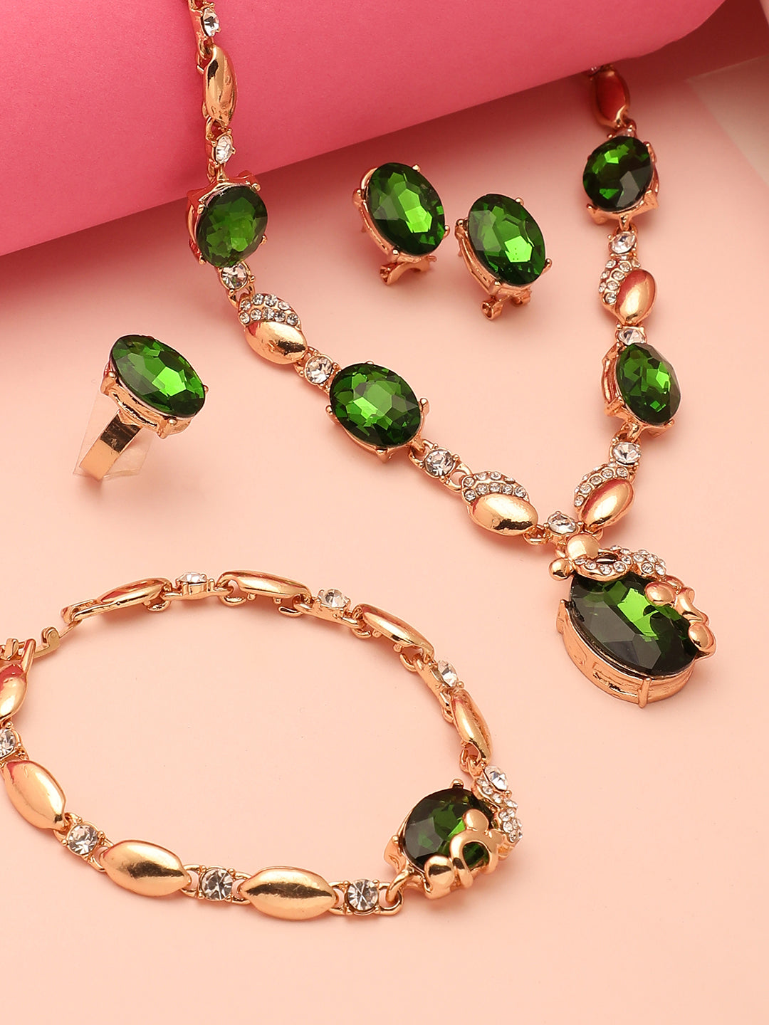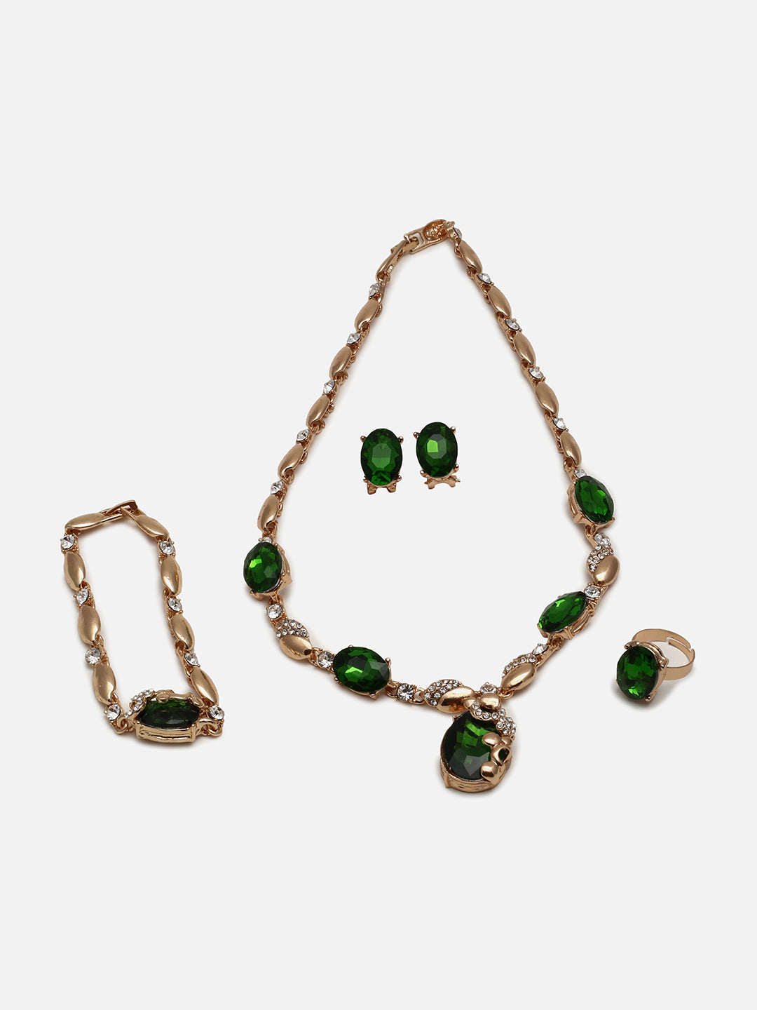 Gold Plated Designer Stone Necklace, Earring, Ring and Bracelet Set