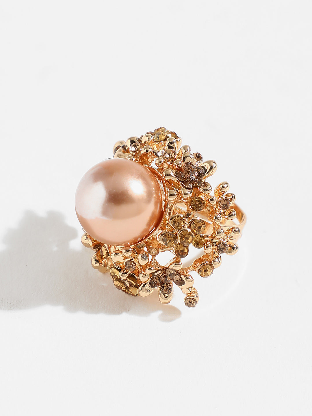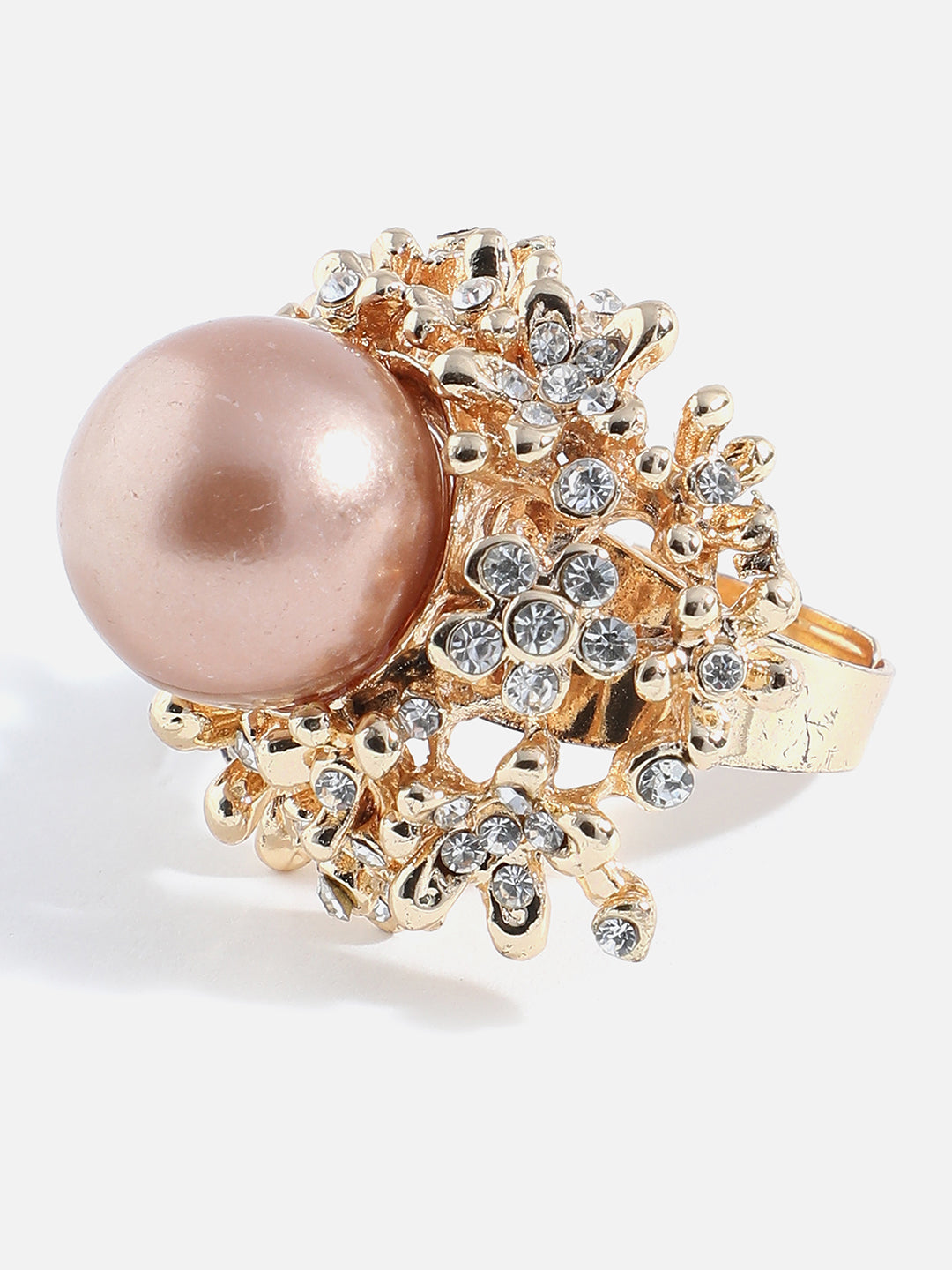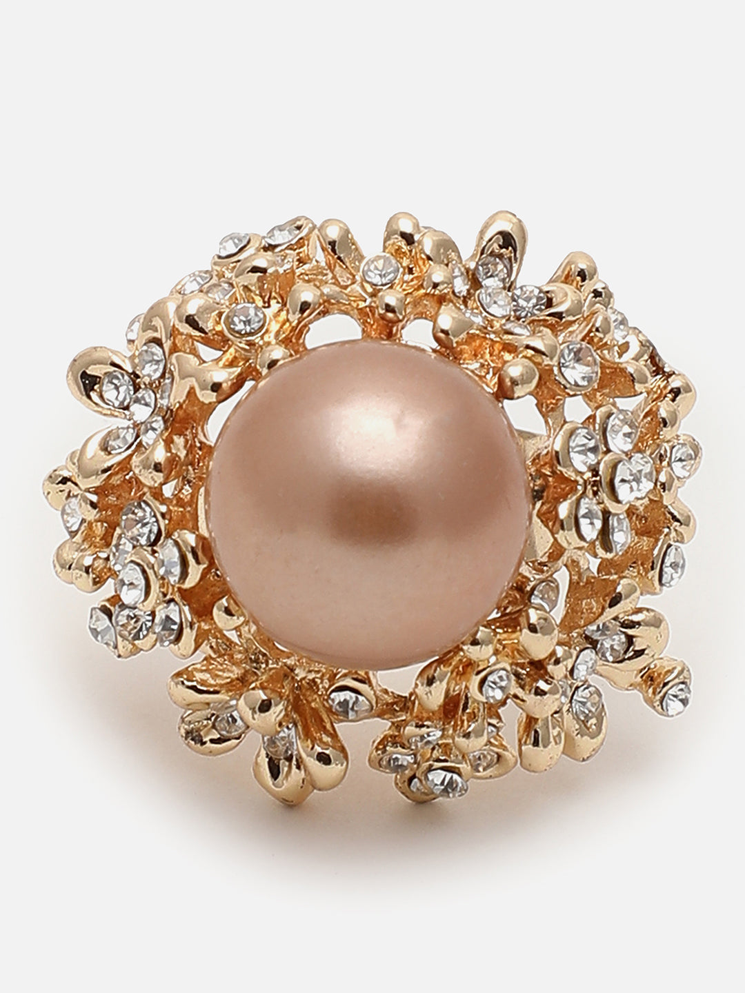 ??STYLE : This rosegold color cocktail ring is a beautiful piece of jewelry that will be treasured not only by the woman who wears it, but also by anyone who sees it. It is a perfect gift for any occasion. ??? MADE UP OF:The metal used is alloy and has gold plating with pearl. gold plated cocktail ring for women latest design, chunky ring for women, imitation. ??VALUE FOR MONEY: This Ring is a great value for money. They are stylish, lightweight, and perfect for wearing to parties or for long hours. With a price that is affordable, it's a best buy. ??GIFTING : This product is perfect for both gifting and personal use. Combine it with a matching dress and you'll be the center of attention at every event! Comes in a beautiful brand paper box. ??CARE : Wipe your jewellery with a soft cloth when needed. Avoid contact with water and keep sprays and perfumes away from your jewellery. Store your jewellery in a flat box. ??ABOUT: Sohi is a known brand of fashion-forward jewelry that encases beauty and elegance. Our products are ideal for each consumer who wishes to make an impression while uncompromising quality.