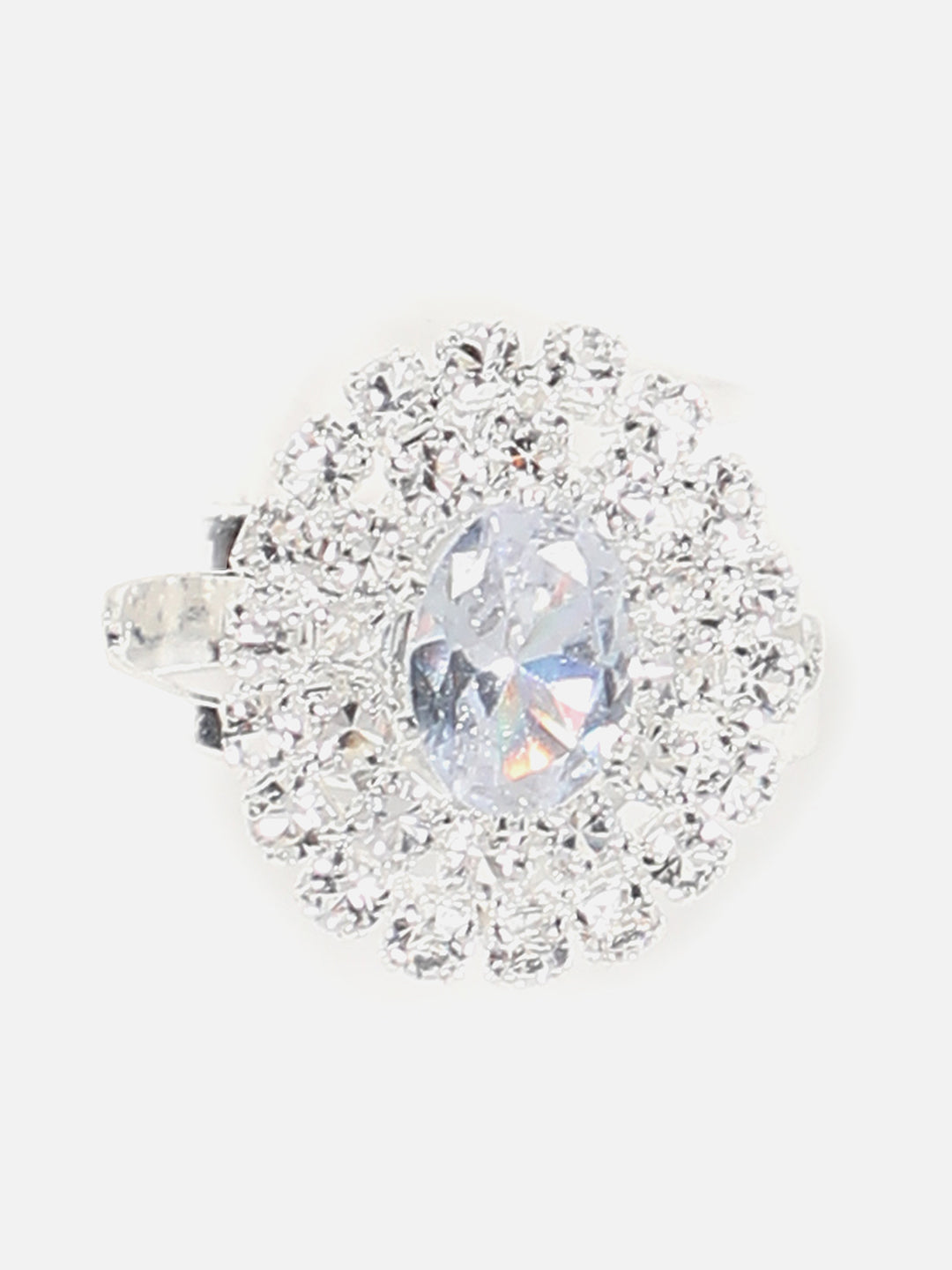 Silver Plated Designer Stone Necklace, Earrings, Bracelet And Ring Set