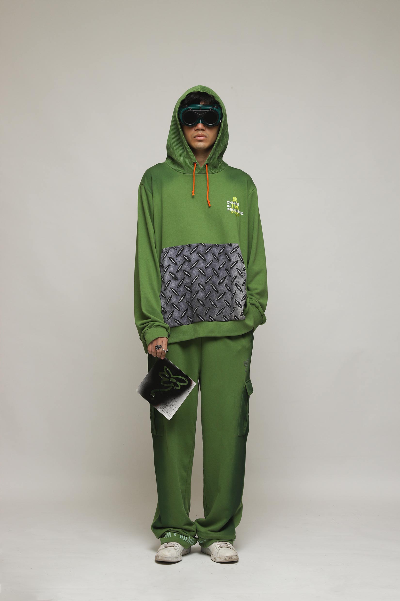 As an art engineer, the Change in Progress Hoodie features a unique spray dye effect and a luxurious velvet print. Enjoy a one-of-a-kind design that combines style and comfort. Perfect for those looking to make a bold statement and stand out in the crowd.