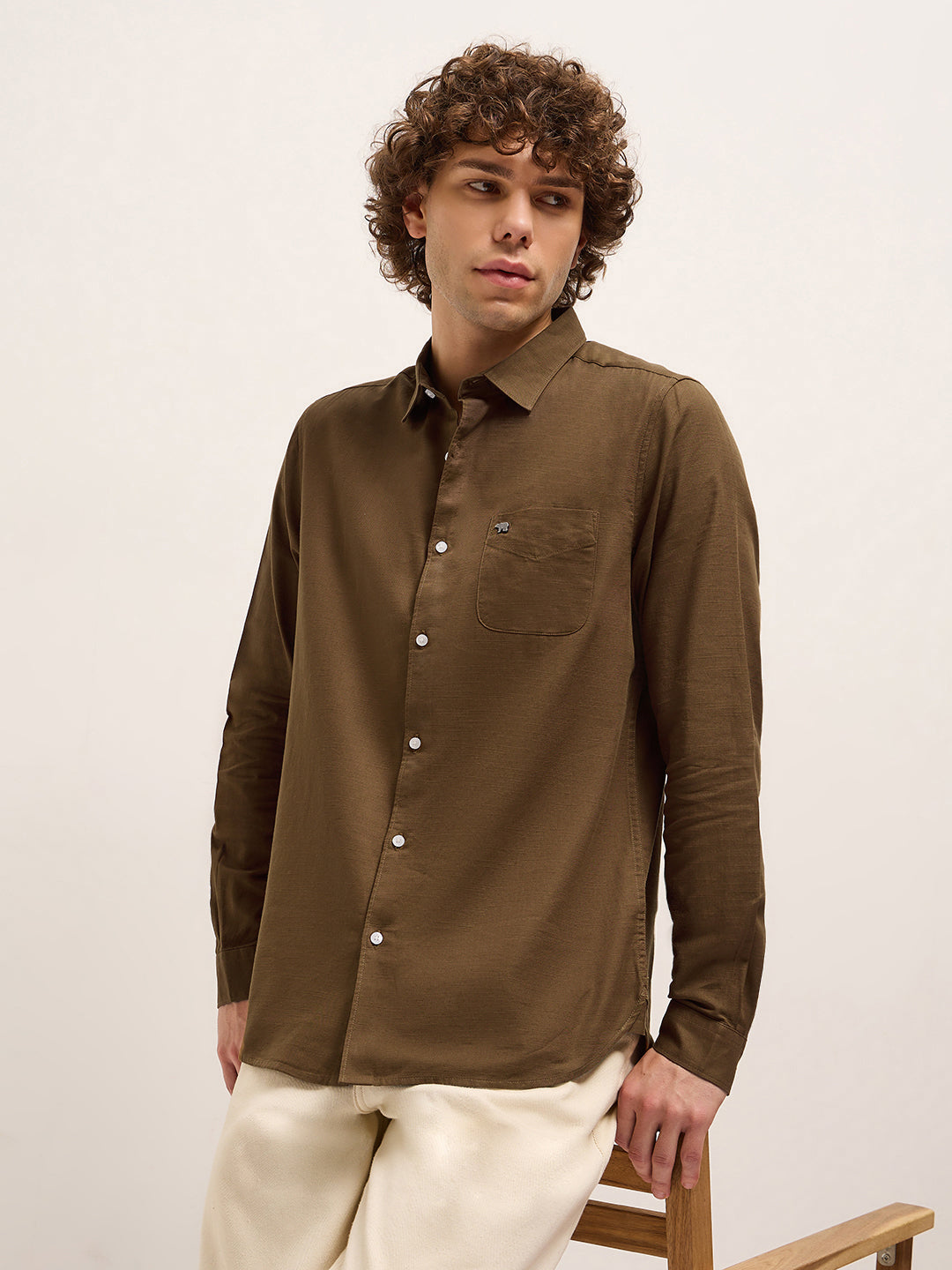 Dark Brown Solid Slim Fit Casual Shirt