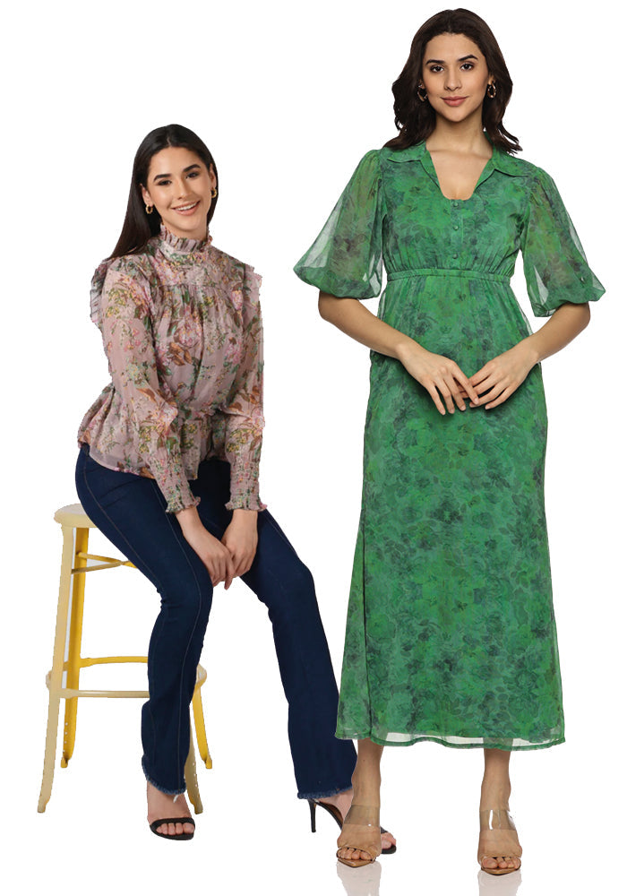 2. Floral green shirt collared maxi dress
