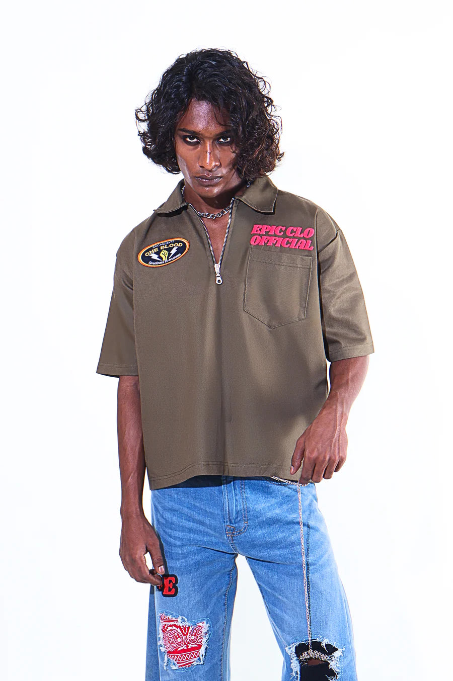 - Olive "One Blood" collar workwear