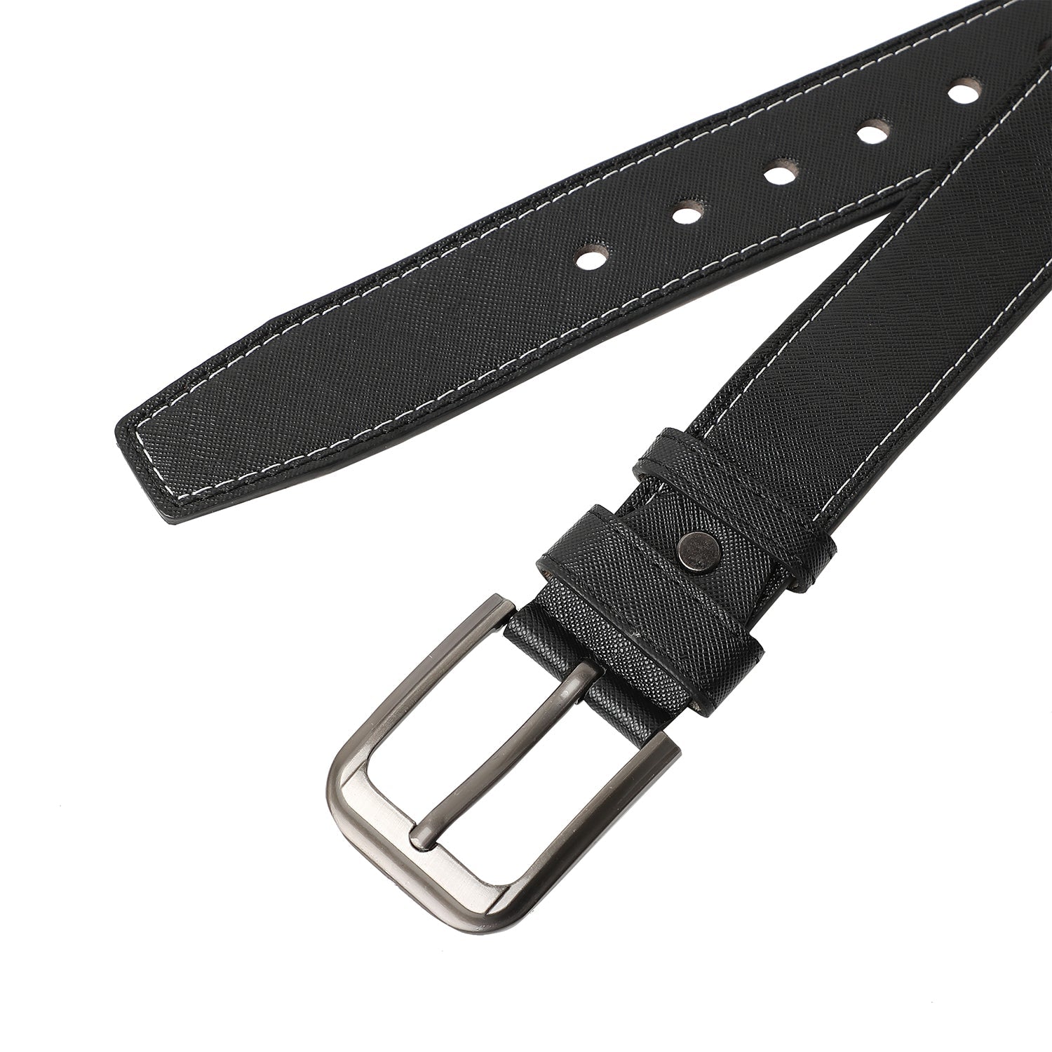 Black Textured Formal Vegan Leather Leather Belt