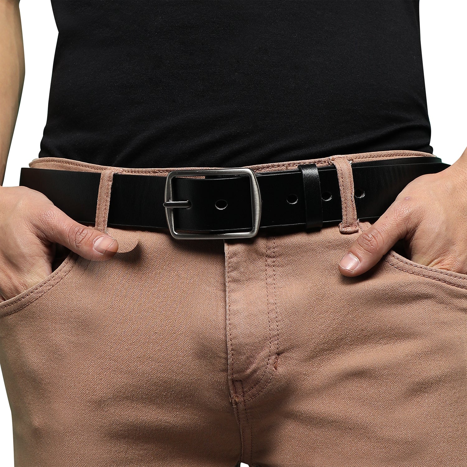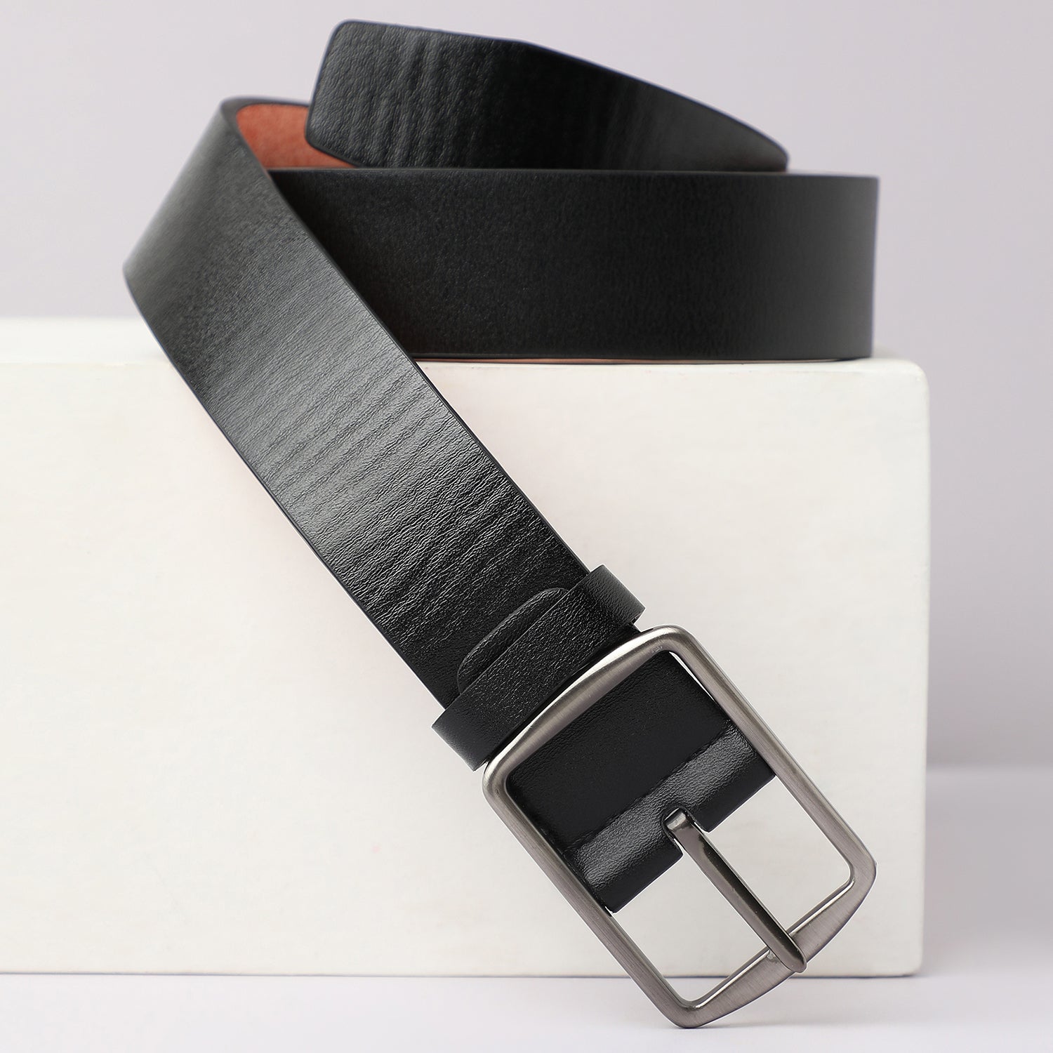 Black Textured Formal Vegan Leather Leather Belt