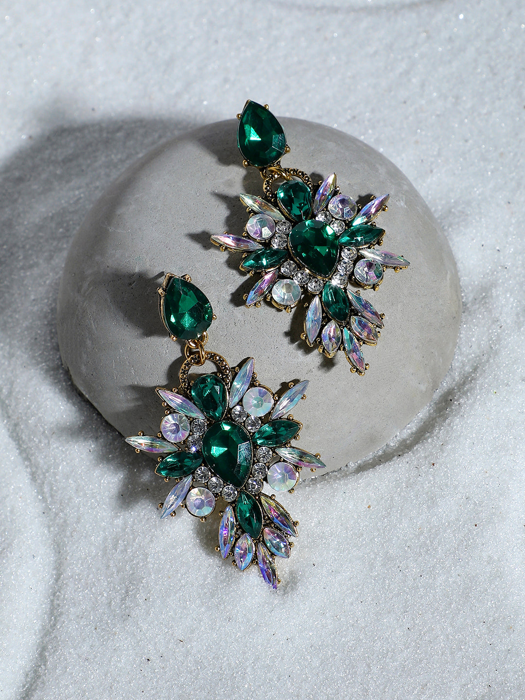 Gold-Plated Crystal Studded Contemporary Drop Earrings