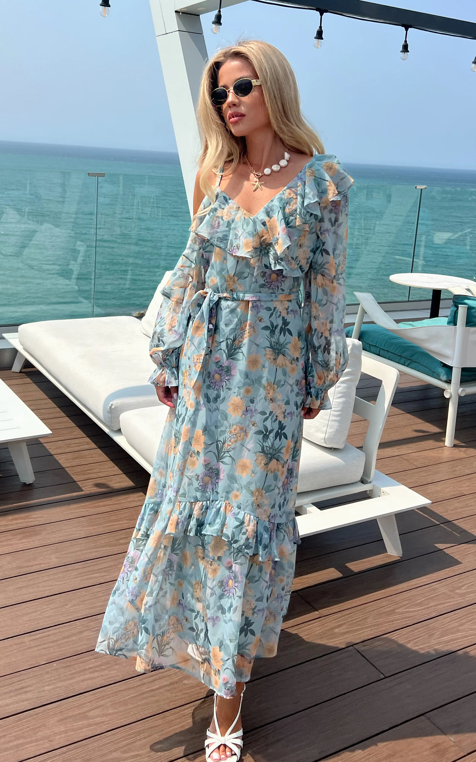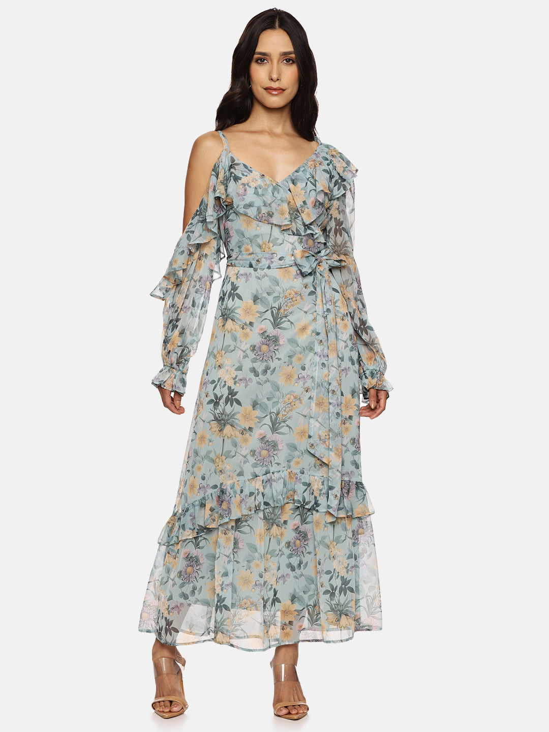 - Ruffle detailing that adds movement and a feminine edge