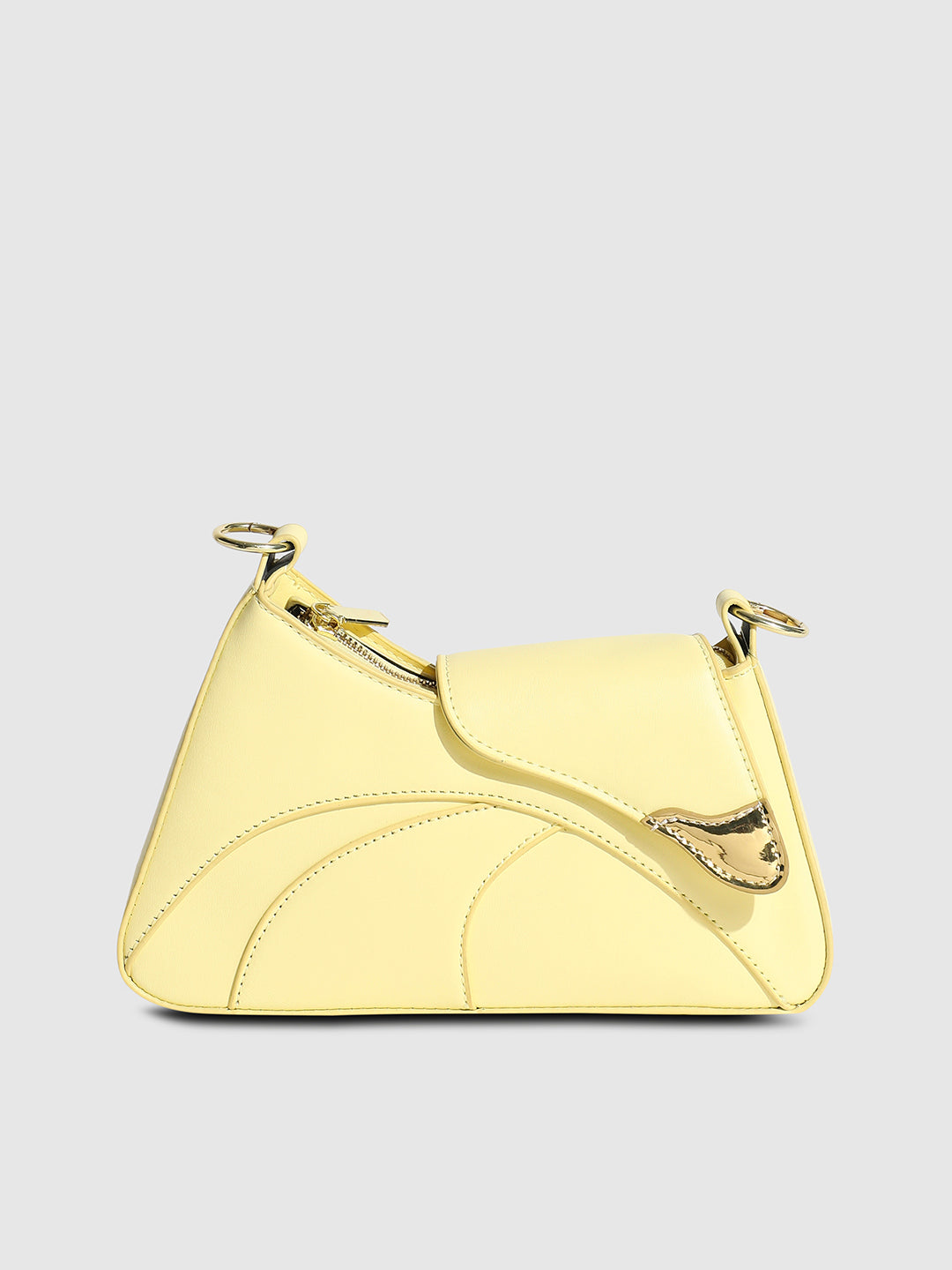 Asymmetrical Flap Handbag - Light Yellow