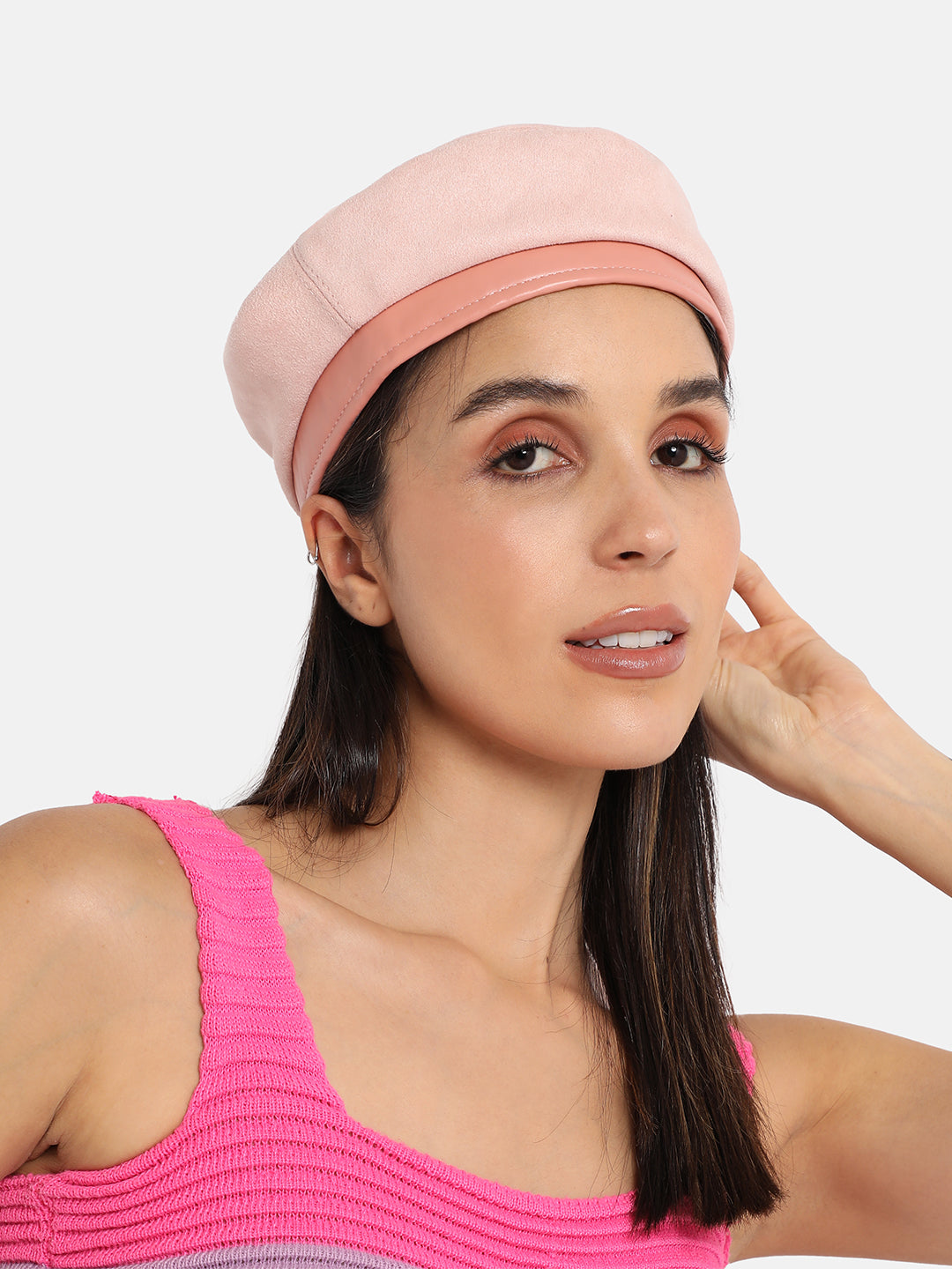 Contrast Texture Beret Hat - Baby Pink