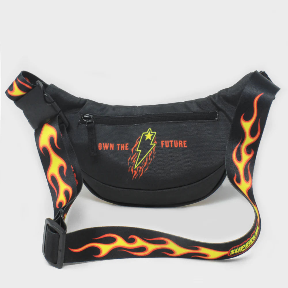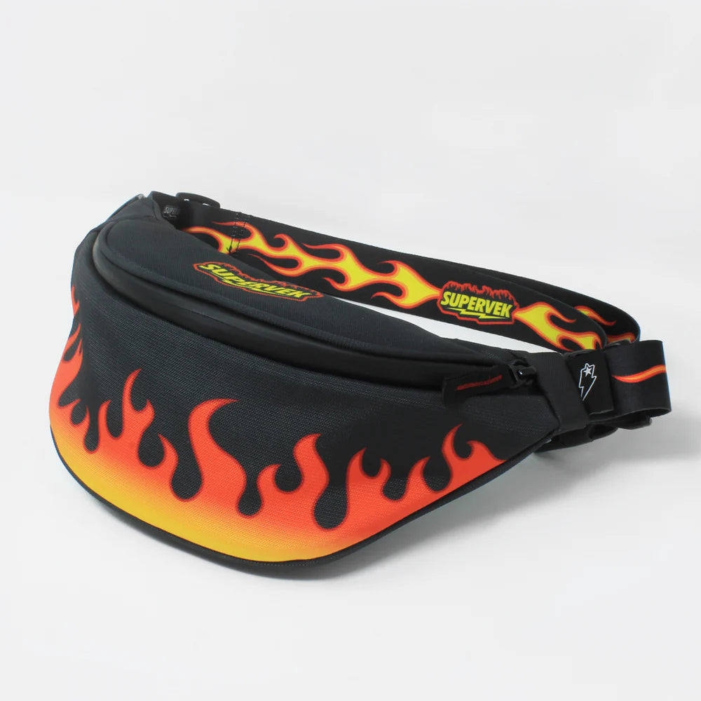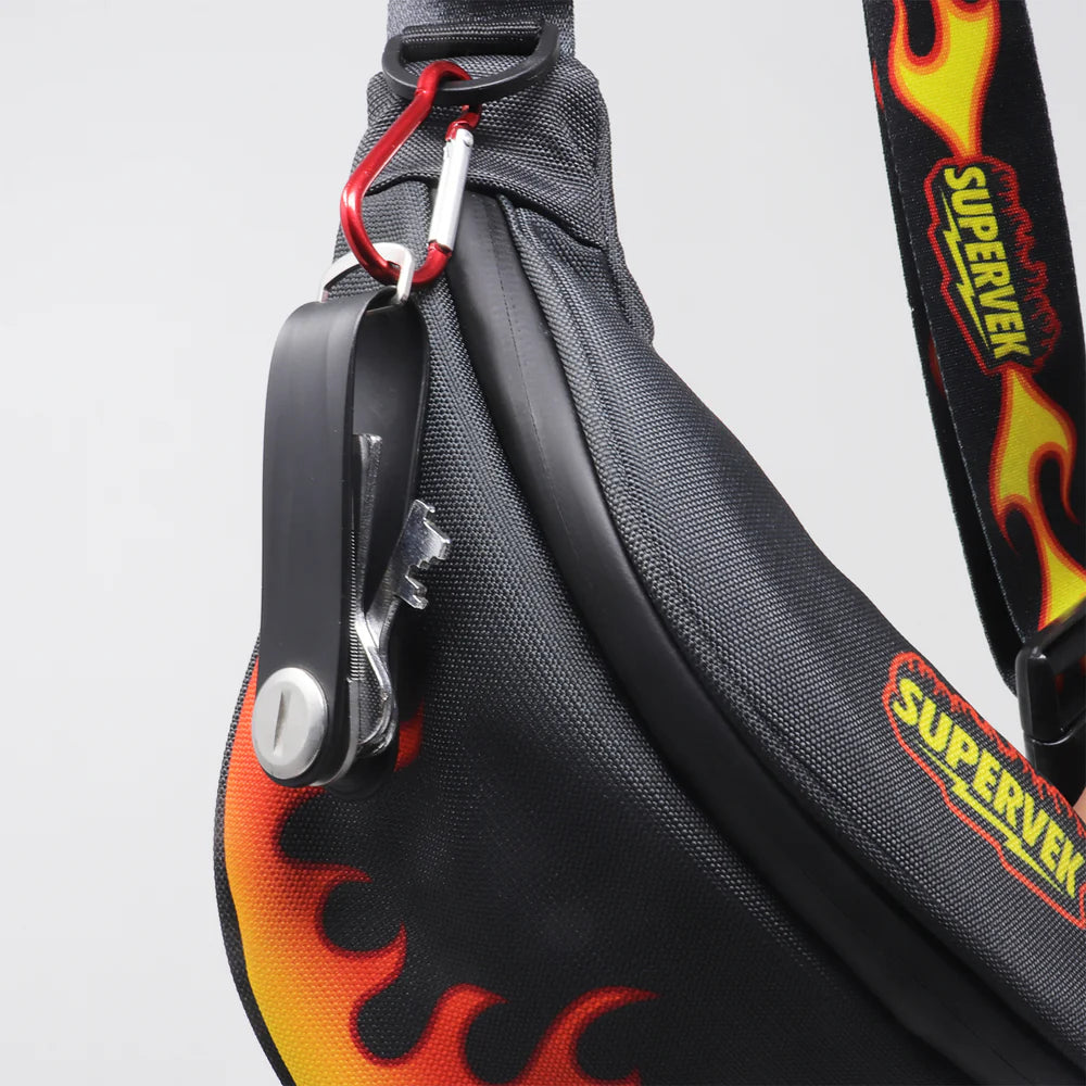 The flame print slinger from Supervek is all about style meets practicality in one sleek package. Elevate your functionality with a lit black slinger — the all-in-one urban essential!