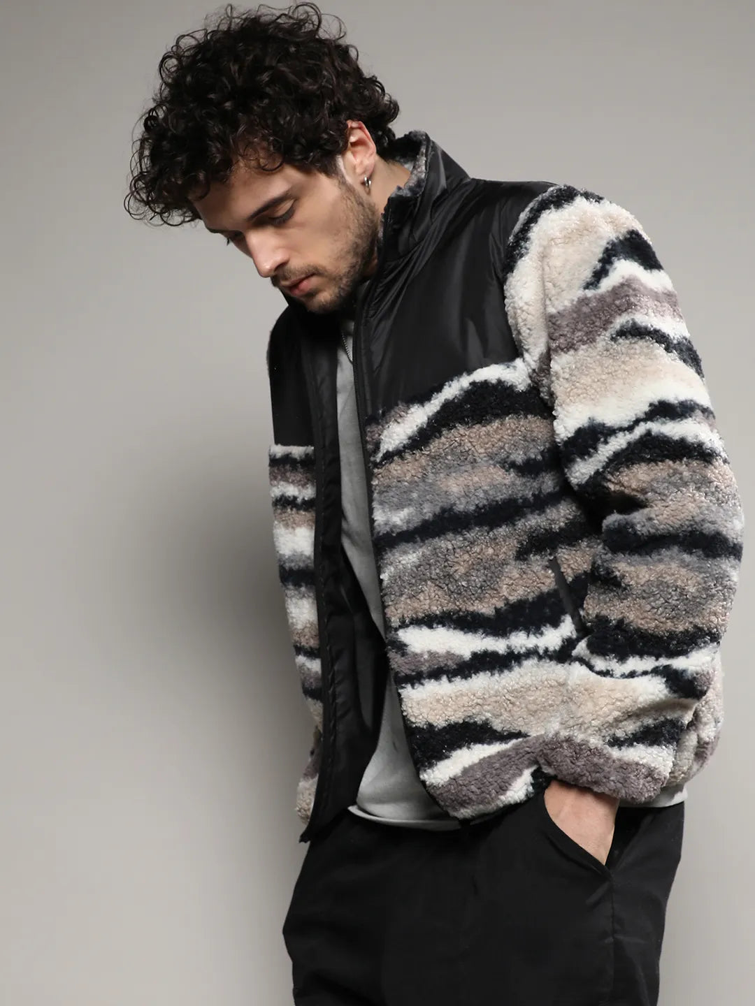 Camouflage Sherpa Zip-Front Jacket