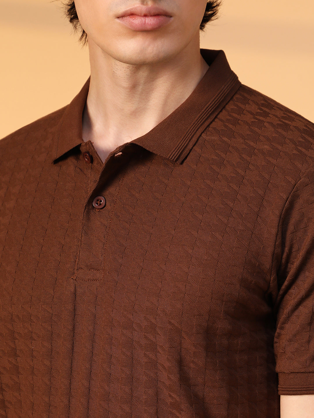 Houndstooth-Textured Polo T-Shirt