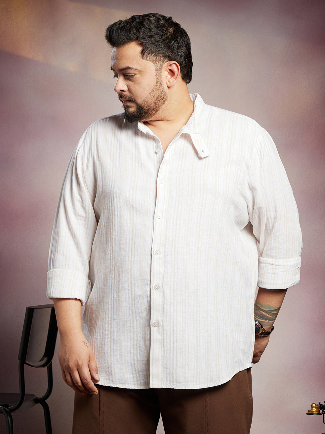 Striped Extended-Band Collar Shirt