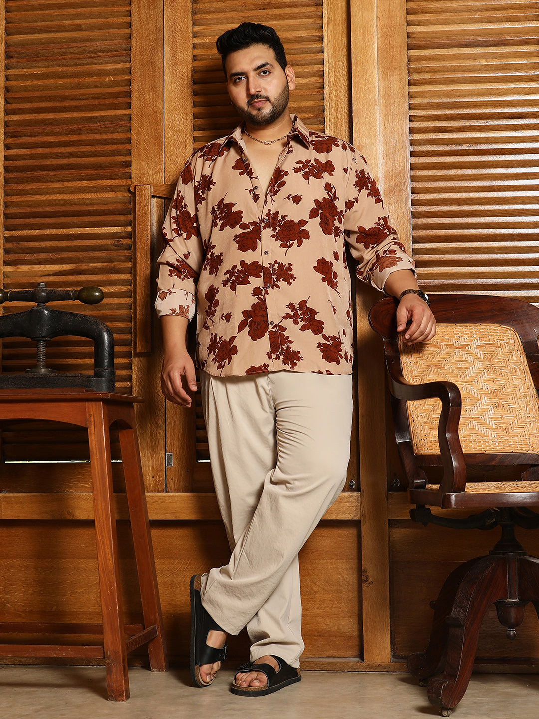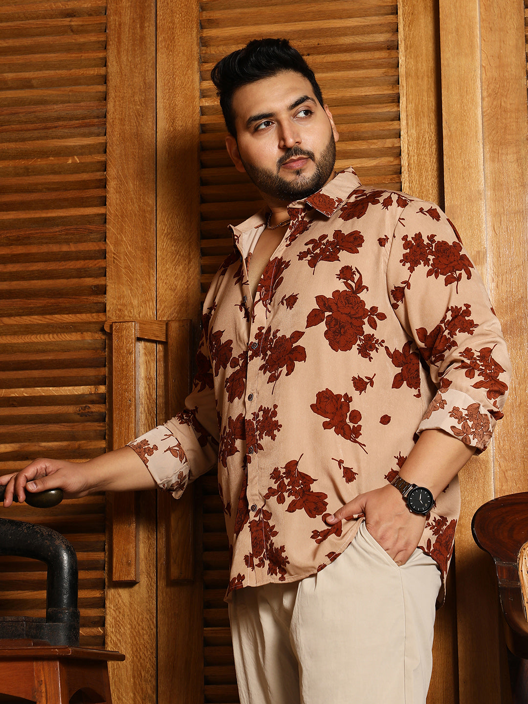 Contrast-Roses Imprint Shirt