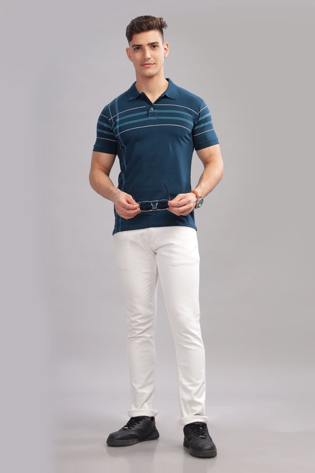 Elevate your casual wardrobe with the Adro Men's Printed Polo T-Shirt, a perfect blend of contemporary style and comfort. Crafted with precision and passion, this polo t-shirt is designed to make a statement wherever you go. Made from premium cotton fabric, this polo t-shirt ensures breathability and all-day comfort, keeping you cool and relaxed even during the hottest days. The exquisite printing detail adds a touch of sophistication to your look, making it suitable for various occasions, from casual outings to semi-formal gatherings. Featuring a classic polo collar and short sleeves, this polo t-shirt offers a timeless silhouette with a modern twist. The fit accentuates your physique, providing a flattering look that complements any body type. Whether paired with jeans for a laid-back vibe or chinos for a more polished appearance, this versatile polo tee effortlessly transitions from day to night. With its attention to detail and superior craftsmanship, the Adro Men's Printed Polo T-Shirt is a wardrobe essential for the fashion-forward man. Upgrade your style quotient and experience unparalleled comfort with this must-have addition to your collection.