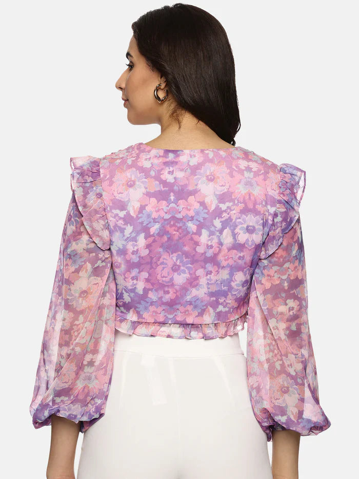 2. Floral purple front gathered crop top