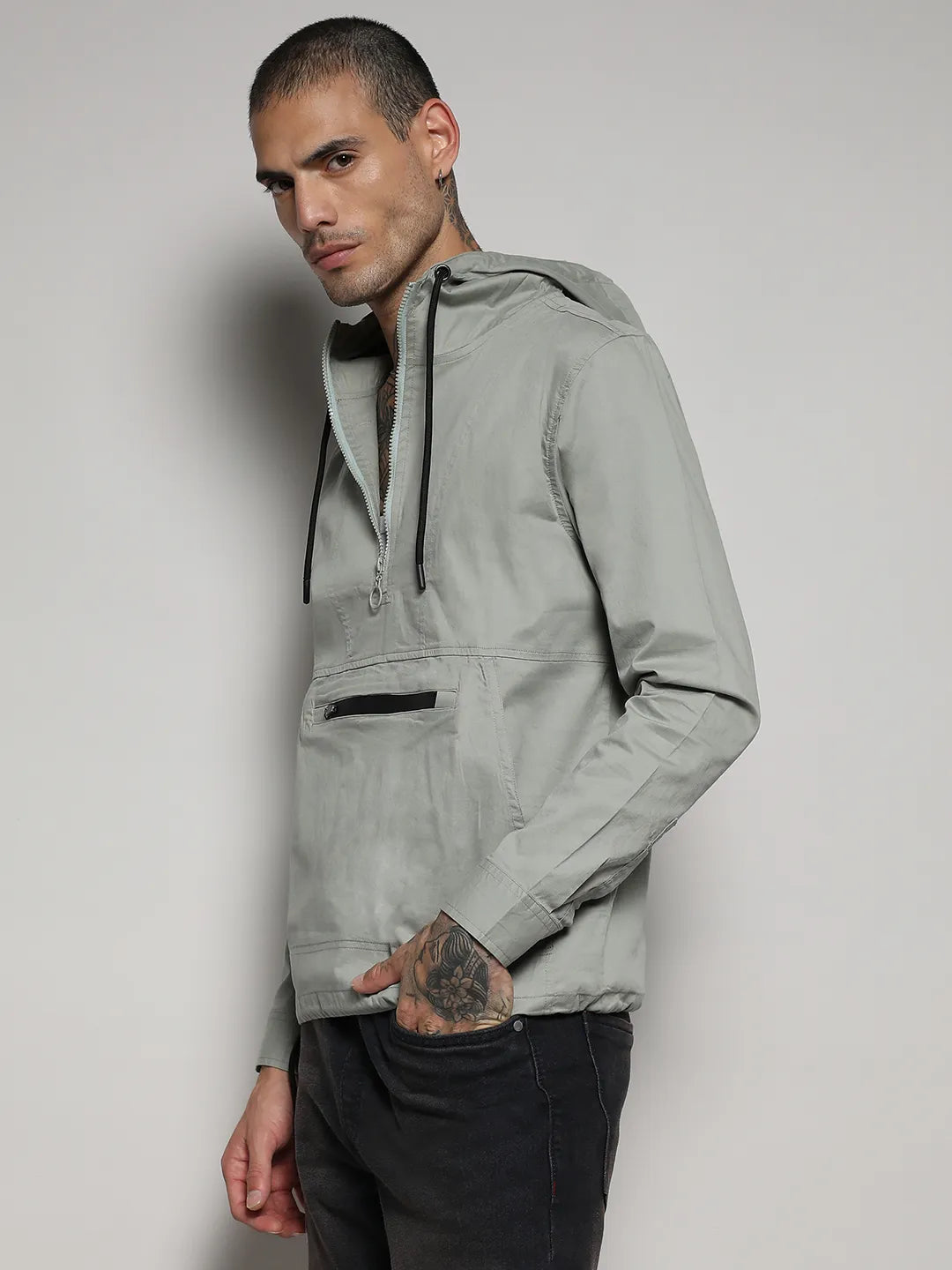 Half-Zip Utility Jacket With Contrast Drawstring