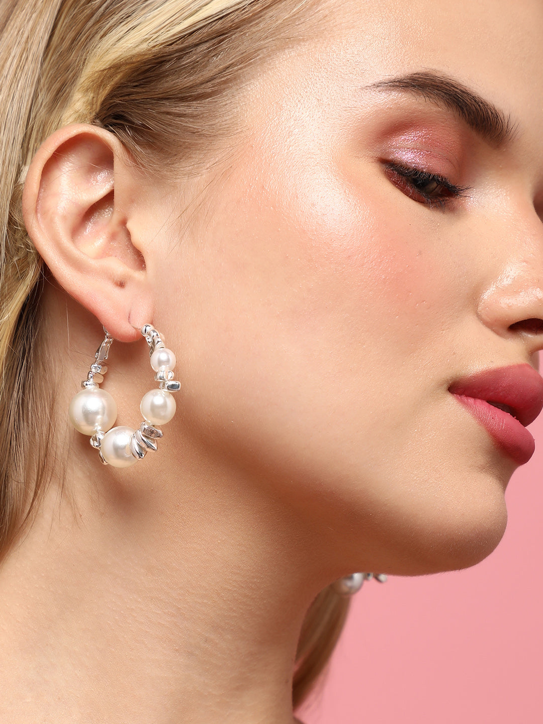 Set Of 2 Silver-Plated Contemporary Earrings