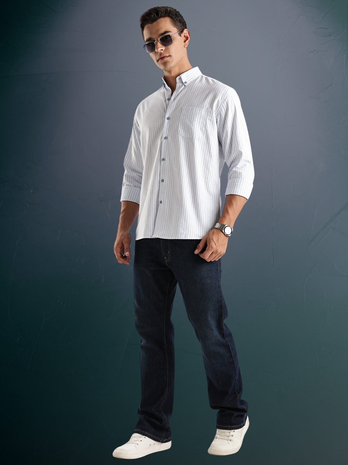 Upgrade your wardrobe with the Adro Men’s Stripes Shirt – where classic design meets modern comfort. Tailored in a flattering regular fit, this shirt is crafted from high-quality, breathable cotton blend fabric for all-day comfort. The smart vertical stripes lend a stylish and elongating effect, making it perfect for both formal meetings and casual outings. Full sleeves and a structured collar complete its versatile appeal. Pair it with jeans, chinos, or trousers for effortless style.