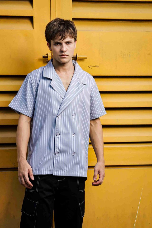 Elevate your casual style with this Textured Grey Stripe Resort Shirt, designed for a relaxed yet refined look. Featuring a Korean-style notched lapel collar and soft textured fabric, this shirt blends comfort with effortless sophistication. The subtle grey stripes add a touch of contemporary charm, making it perfect for vacations, brunches, or evening outings.