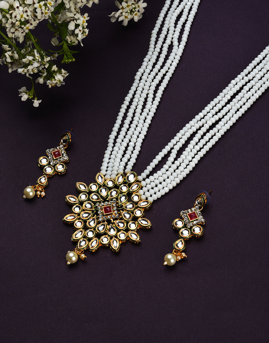 Kundan Beads Gold Plated Necklace Set