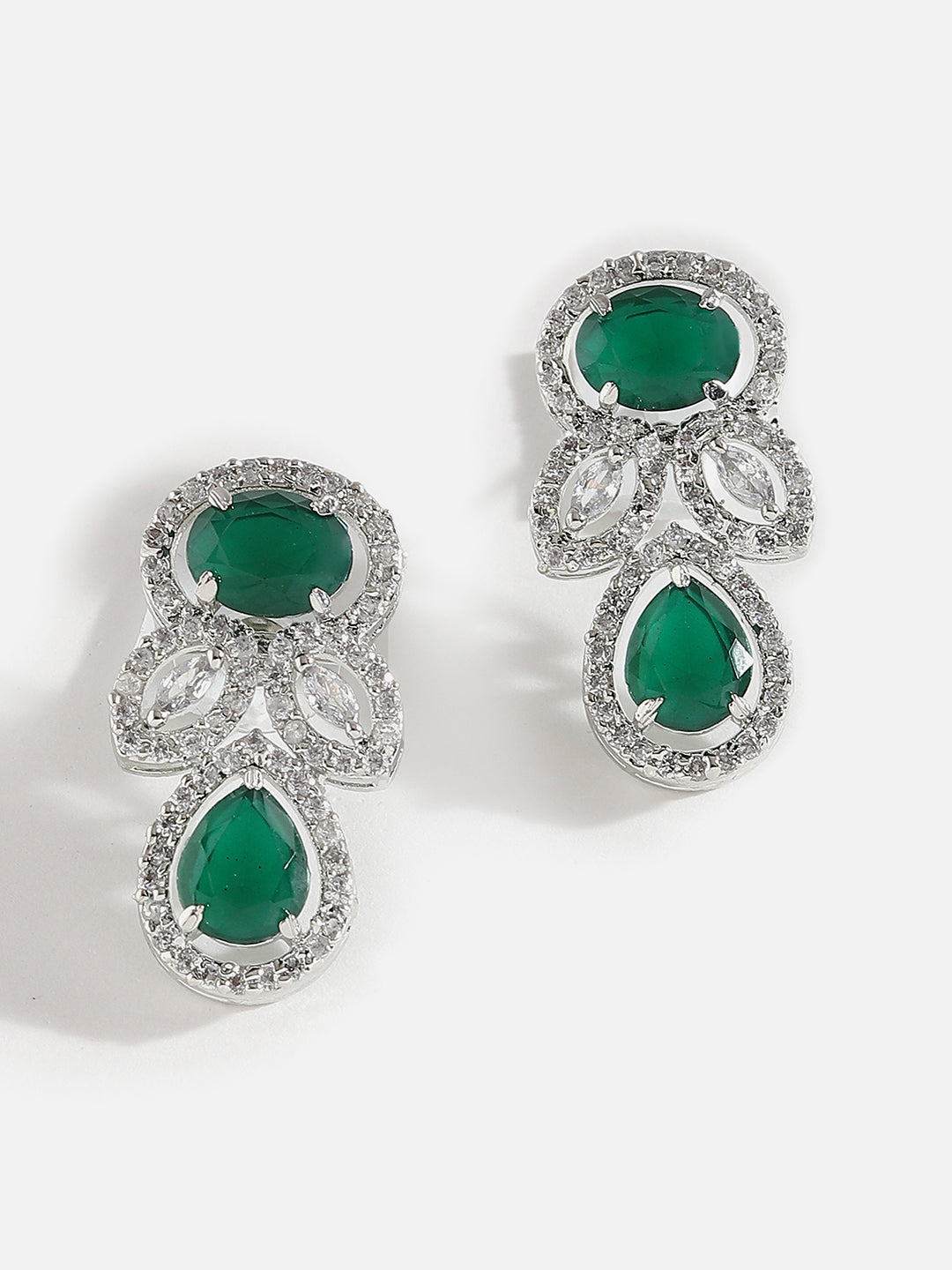 SILVER PLATED AMERICAN DIAMOND AND DESIGNER STONE NECKLACE AND EARRING SET