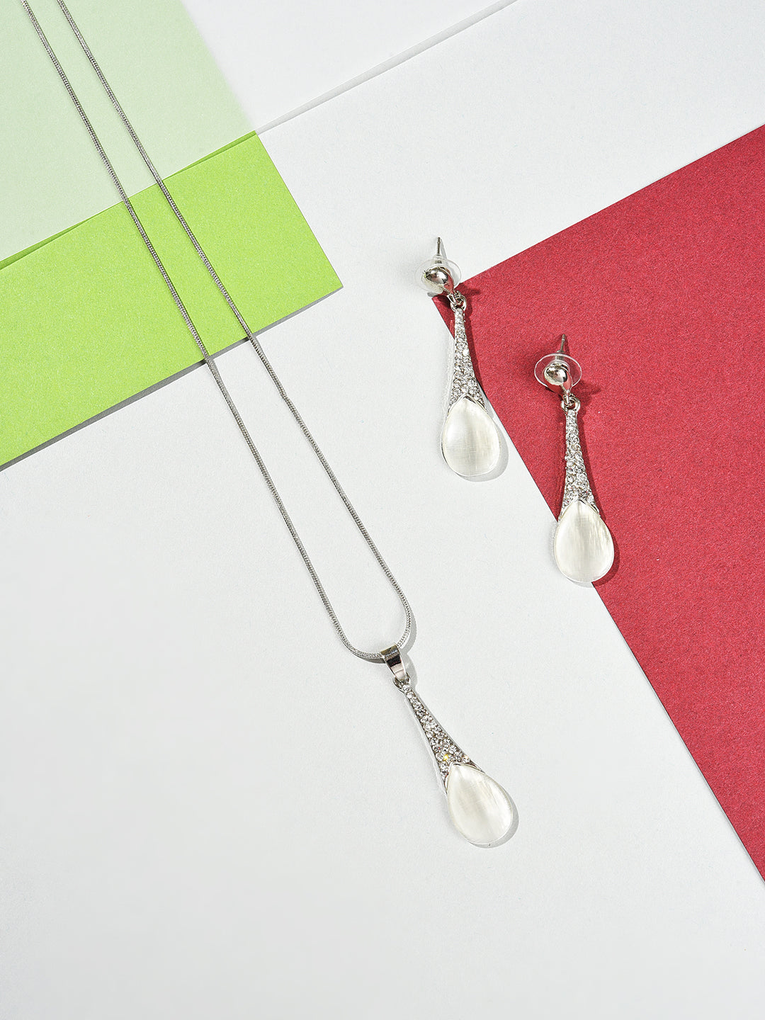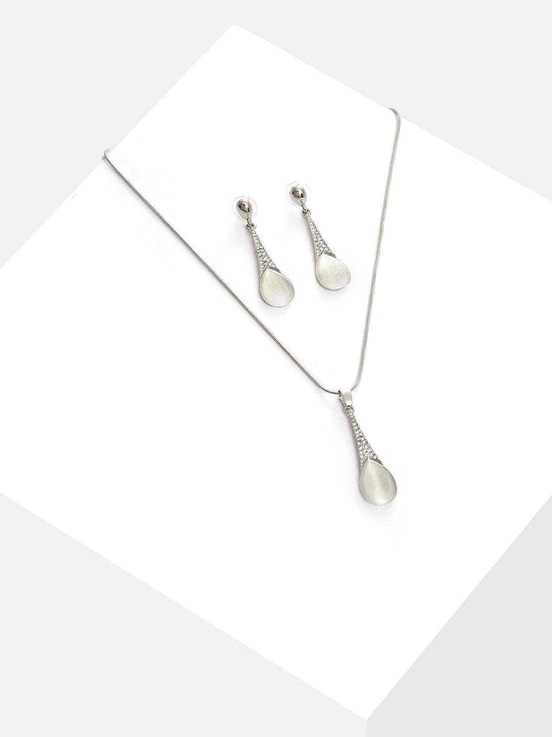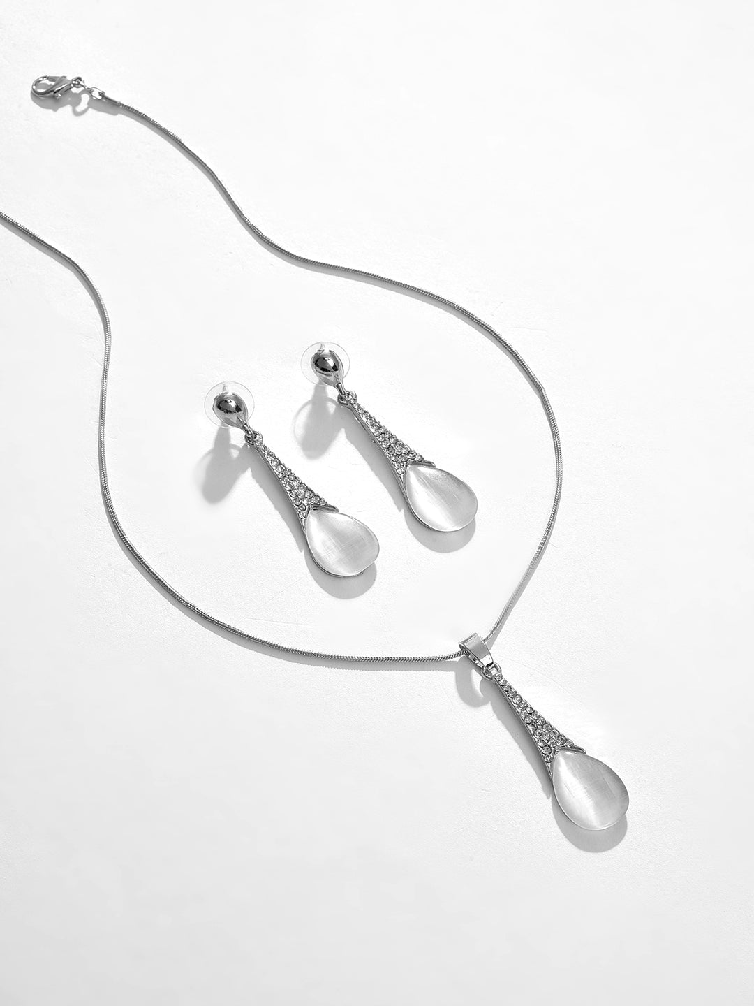 Silver Plated Designer Stone Necklace and Earring Set Jewellery Set