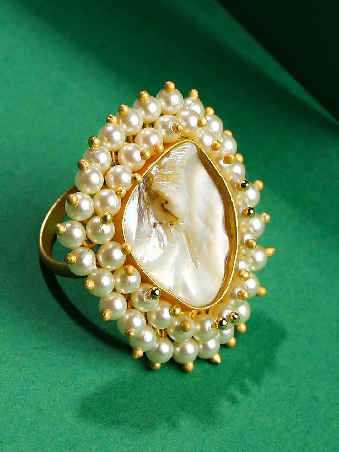 Gold-Plated Brass Jadau Adjustable Ring