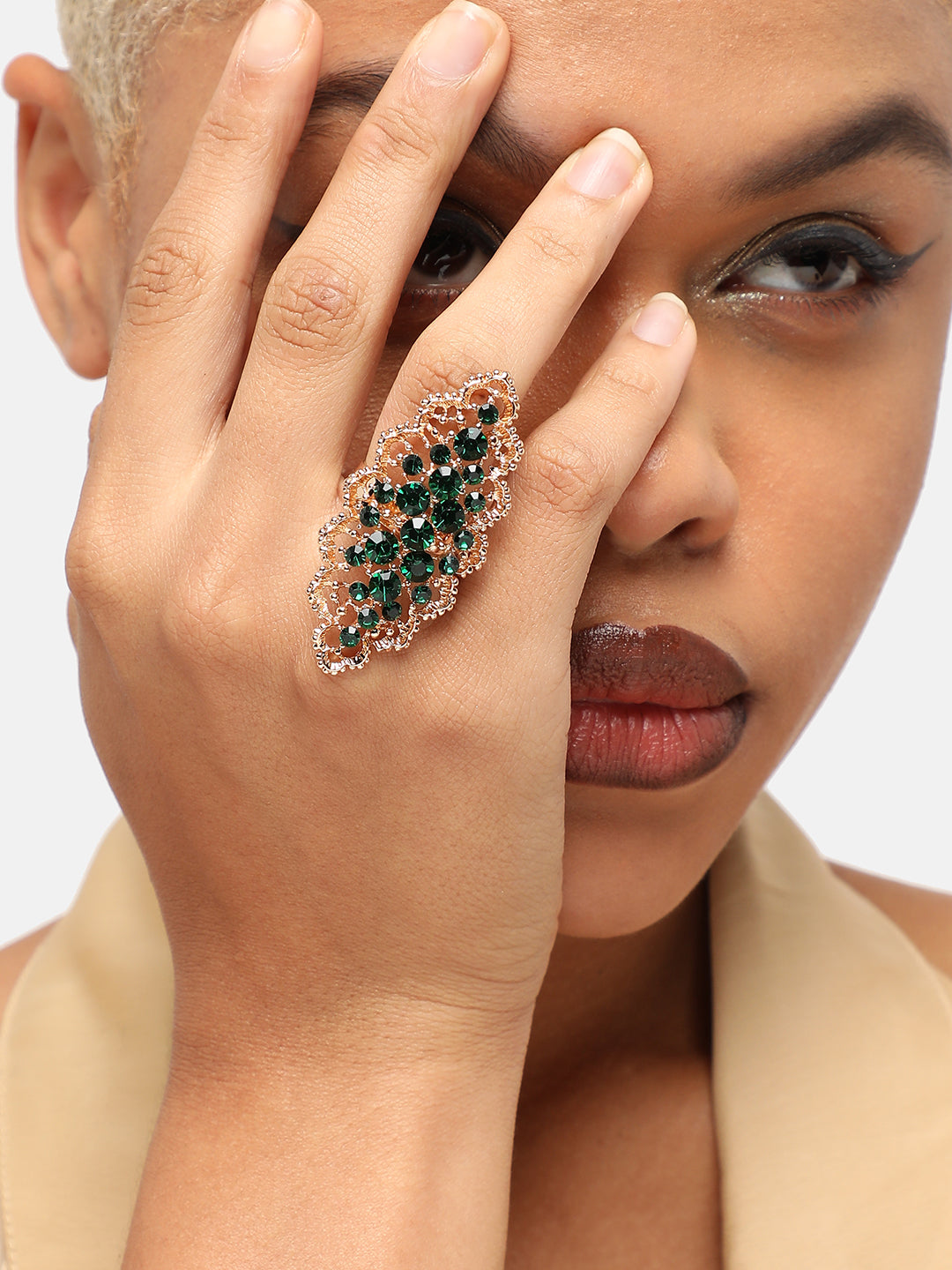 GOLD PLATED PARTY DESIGNER STONE RING FOR WOMEN