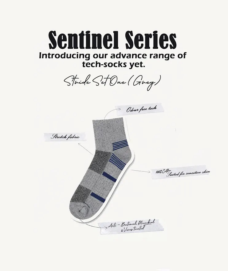 Elevate your everyday essentials with Stride Set One. This trio of ankle length socks blends form and function through modern gridline patterns and earthy, versatile tones. Designed for all-day comfort and effortless style, these socks offer breathable fabric, cushioned soles, and a tailored fit to keep up with every step of your day. Why You’ll Love Them:
