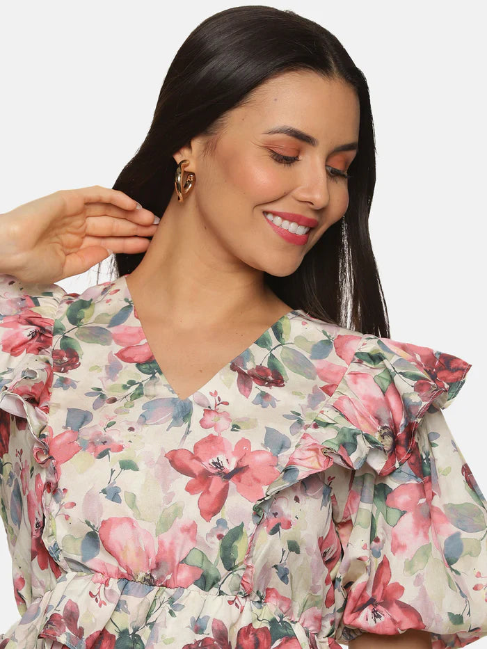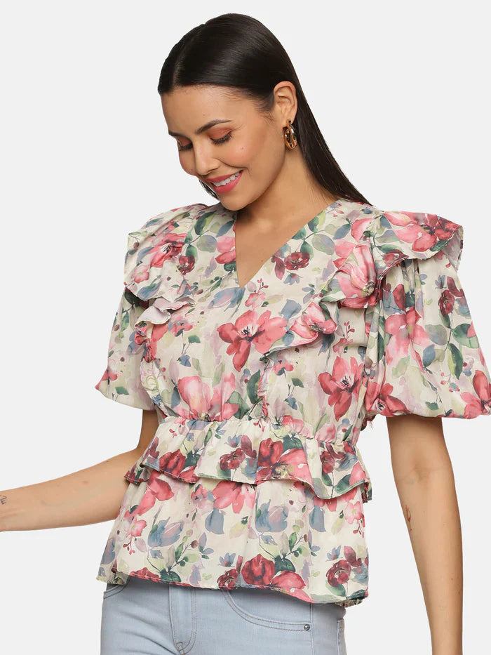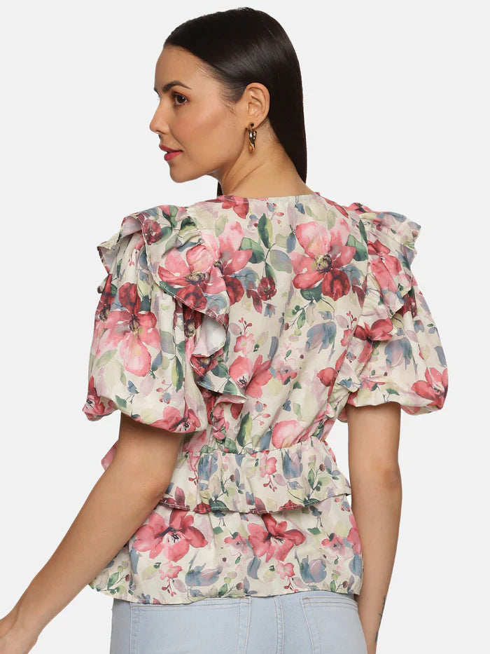 2. Floral multicolor ruffle detail peplum top