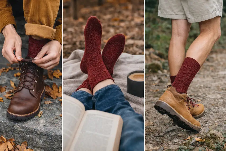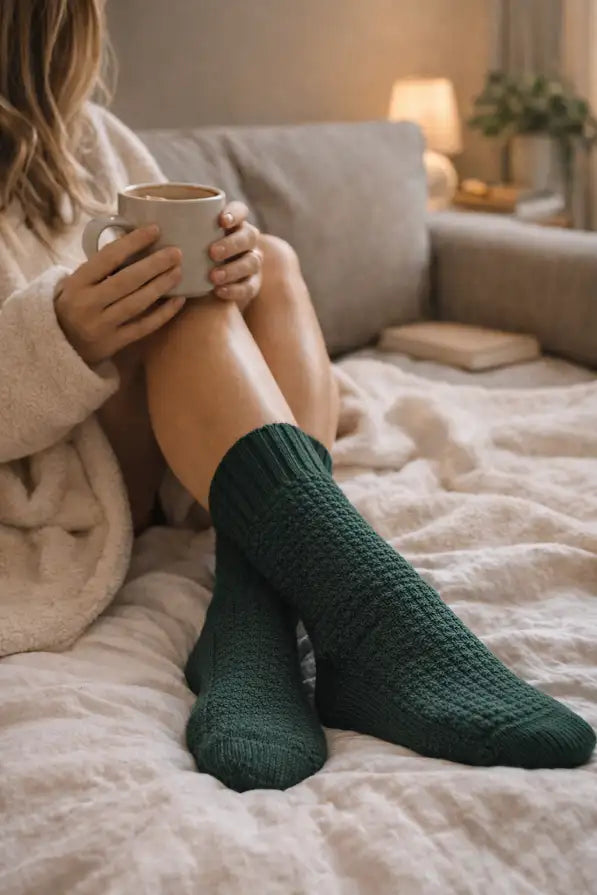 Introducing The Hearth Collection — double cylinder terry socks meticulously knitted by master craftsmen, combining precision with purpose. Each pair is woven using a unique blend of Organic Cotton and Recycled Polyester, offering an indulgent feel with durability designed to last through seasons.