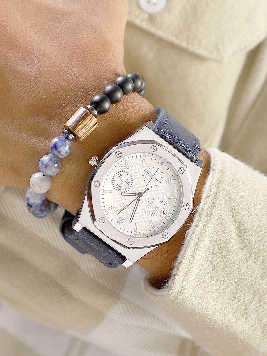 The Torque Compass Round Watch With Beaded Bracelet Combo