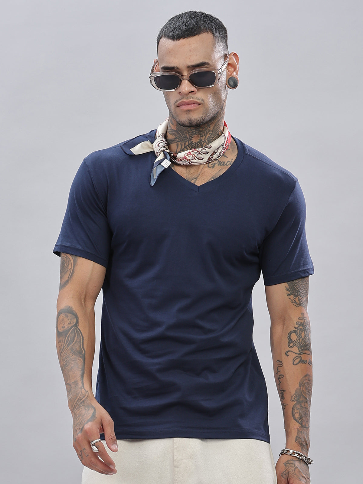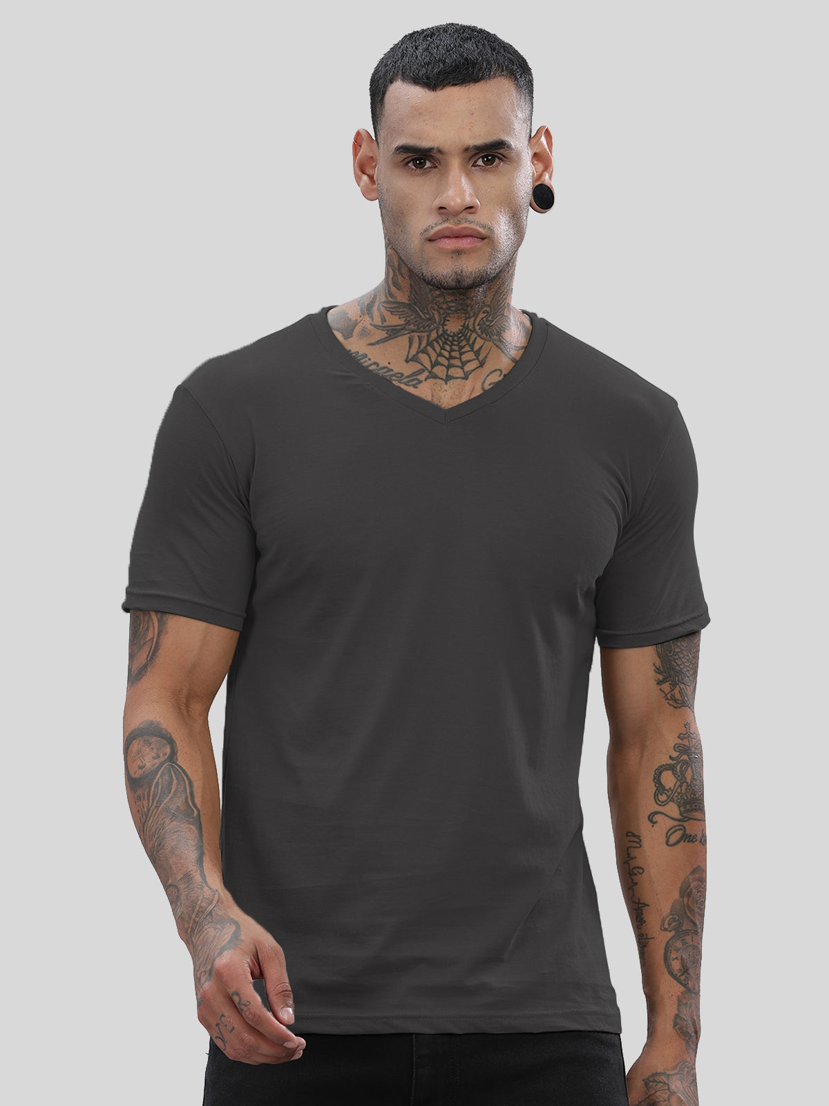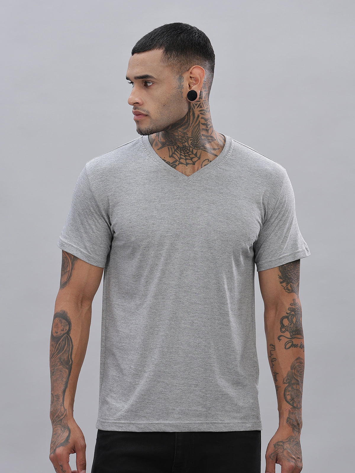 Solid Cotton V Neck T-Shirt
