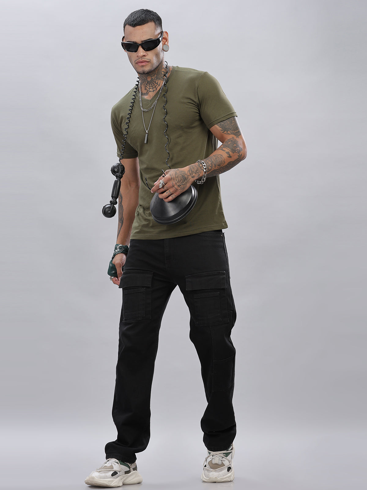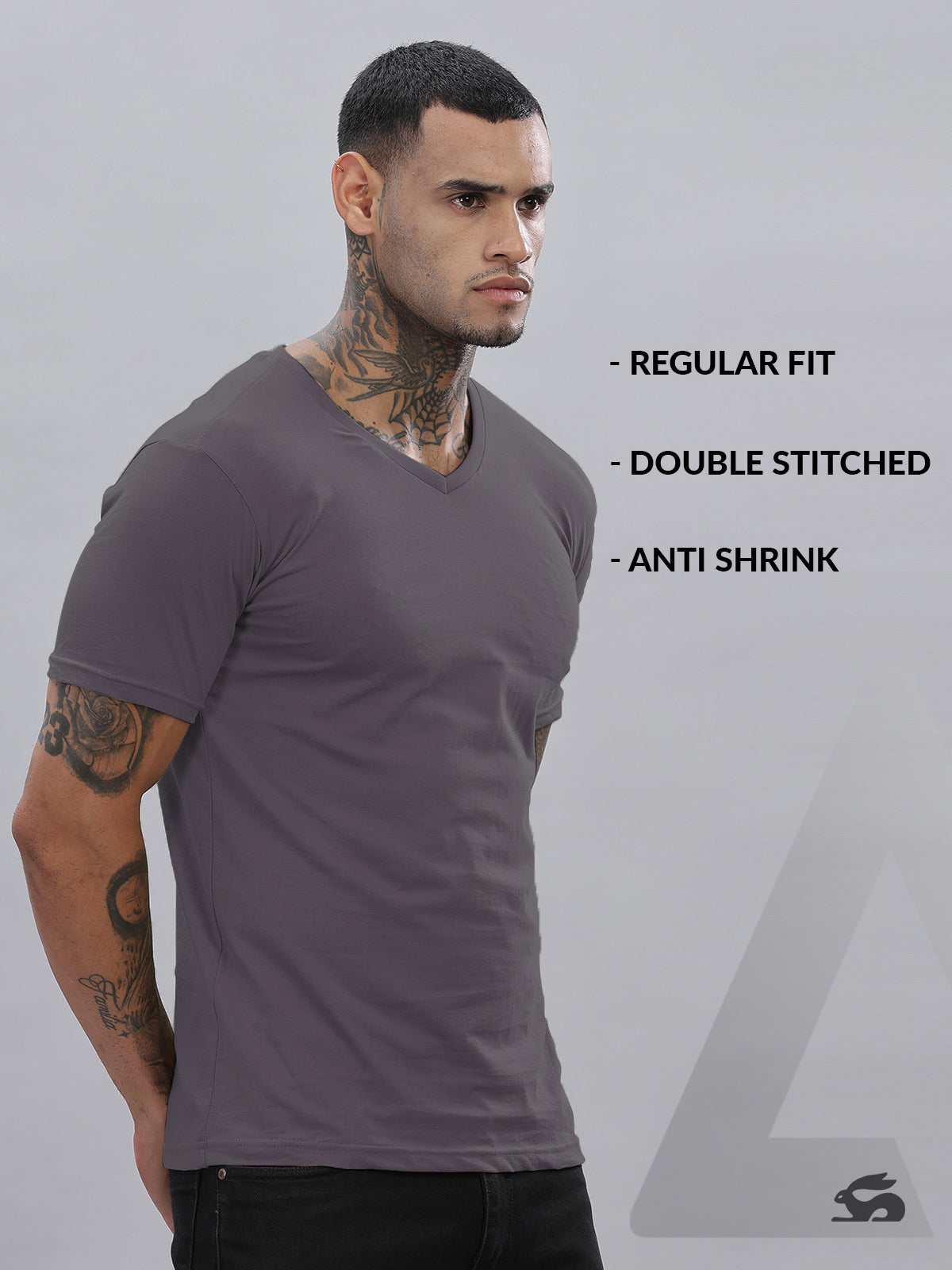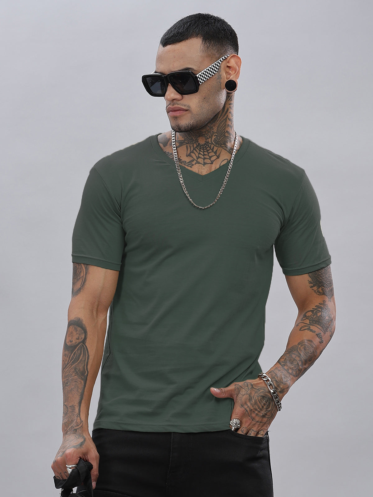 Solid Cotton V Neck T-Shirt