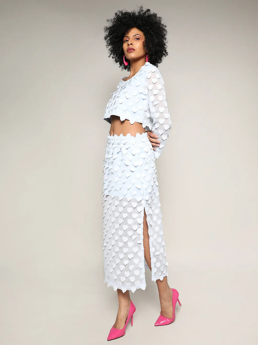 Sheer Applique Co-Ord Set With Slit