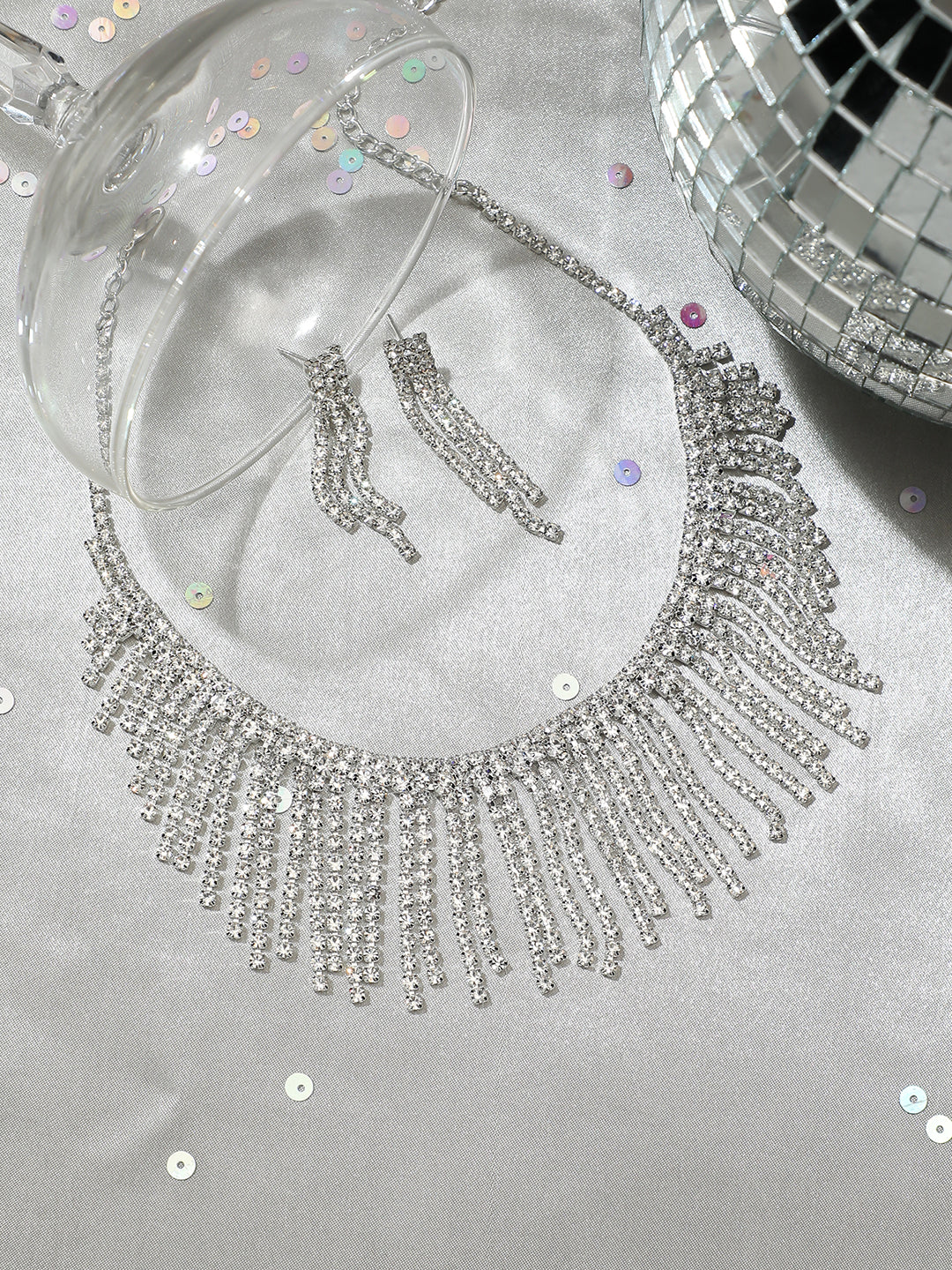 Silver Plated Designer Party Necklace and Earring Set