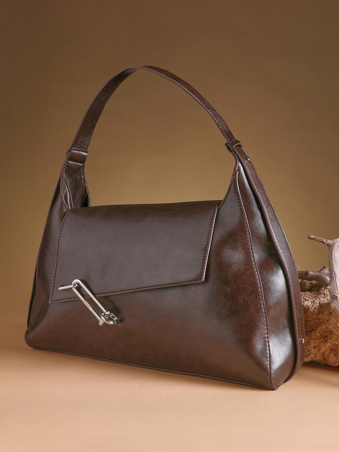 The Large Slant-Flap Hobo Bag - Coffee Brown