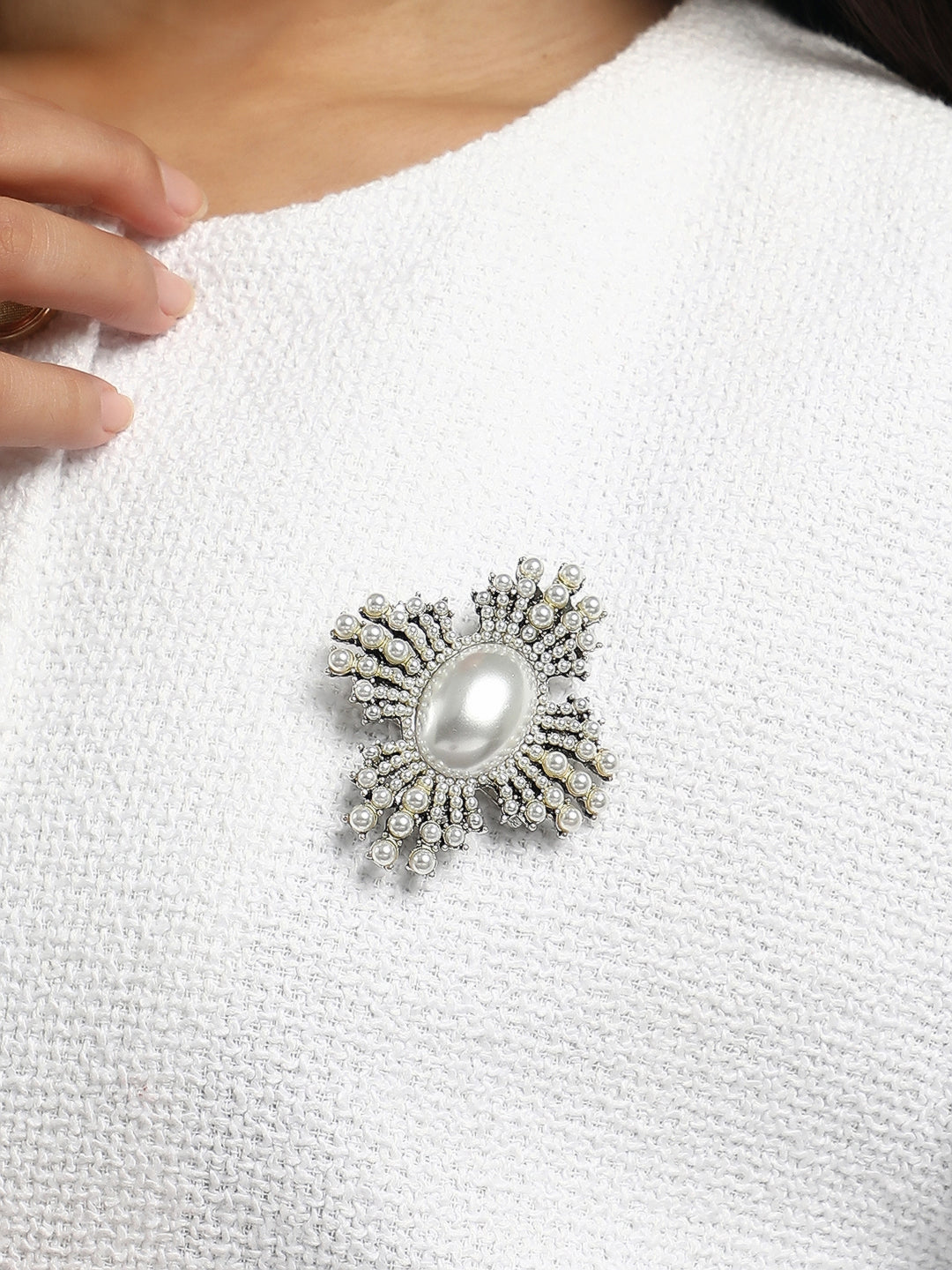 The Rosary Statement Brooch - Pearl White-SOHIBH6215