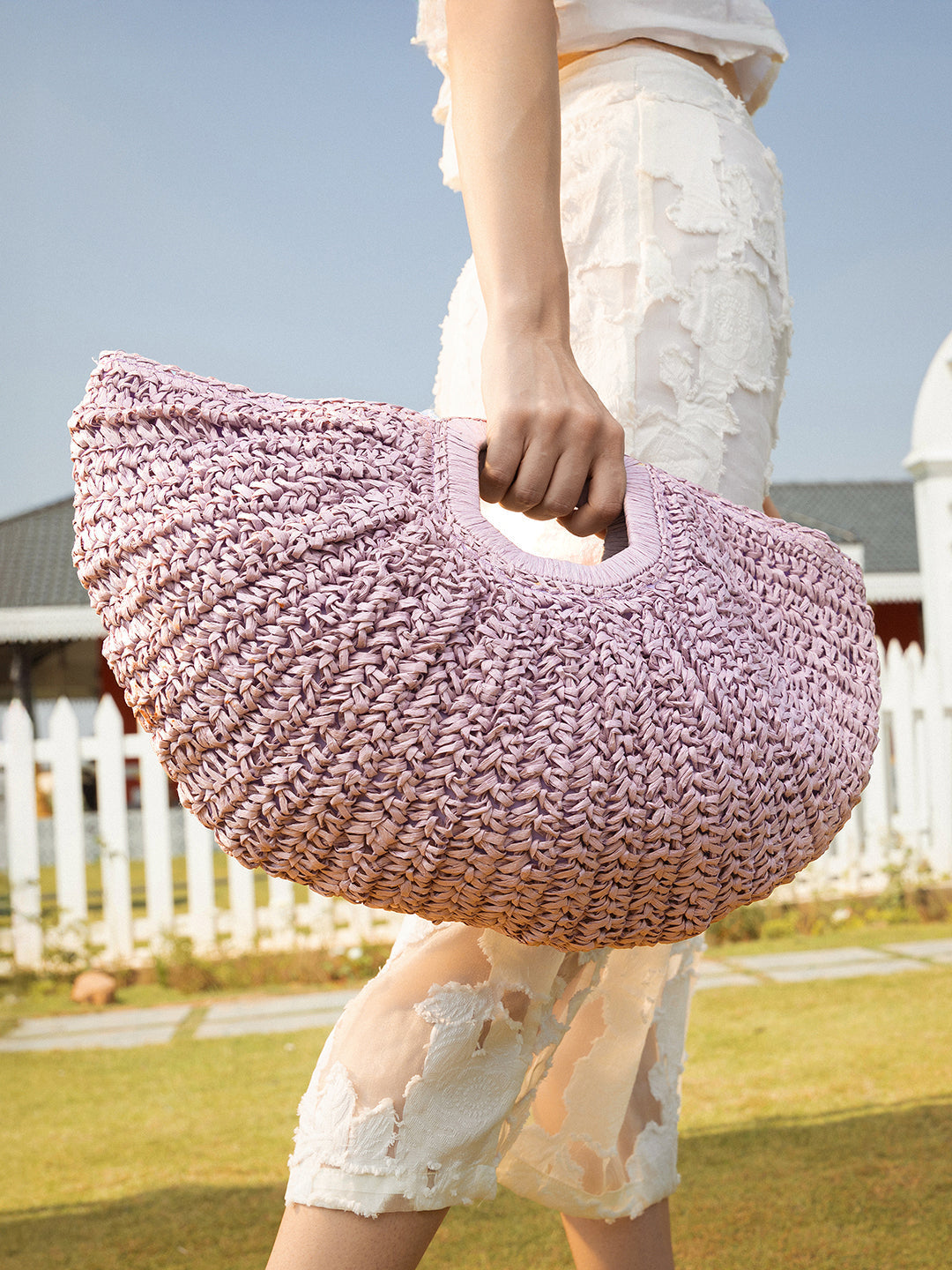 The Sol-Straw Hand Bag - Lilac