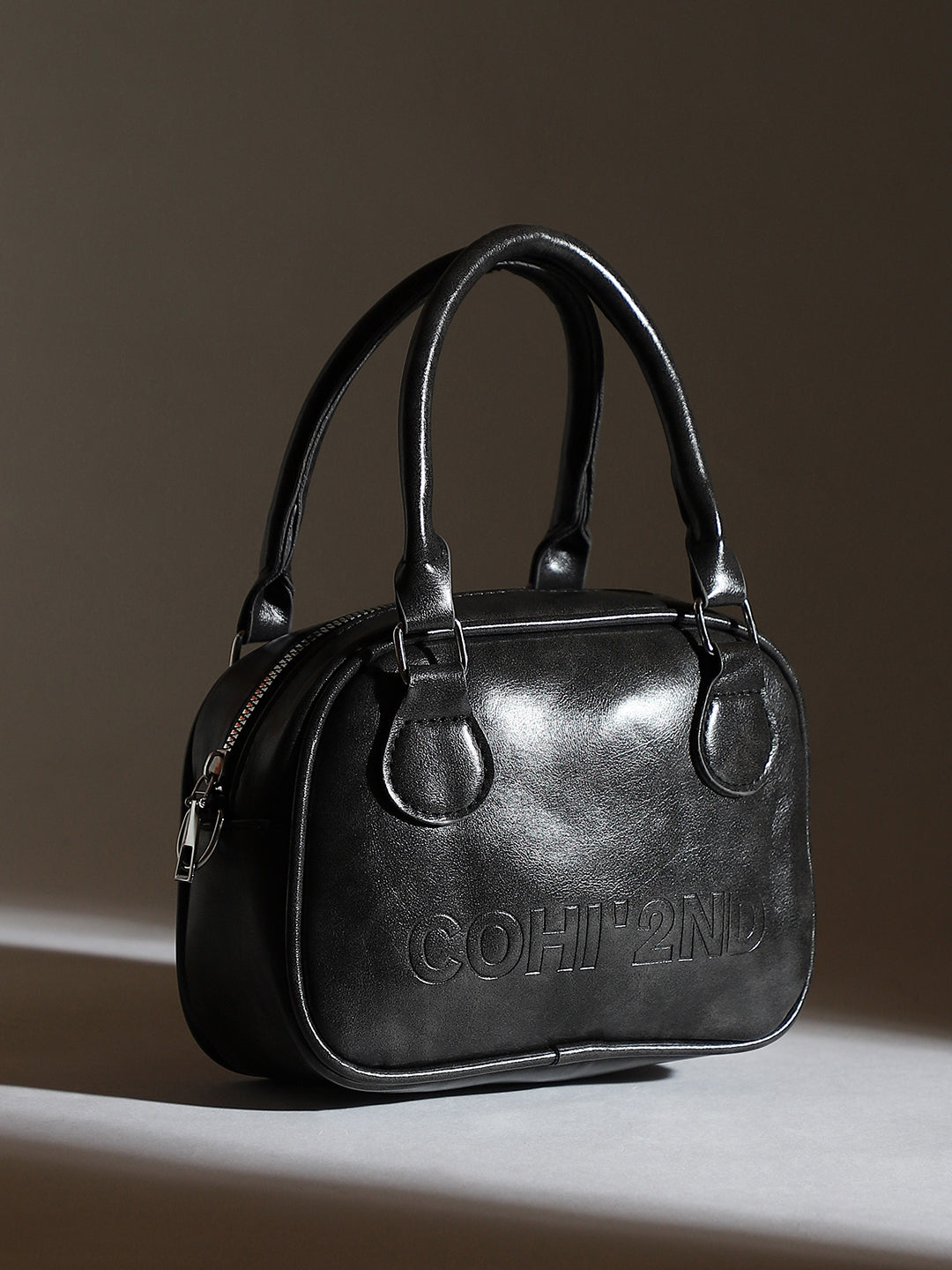 The Square-Bowling Hand Bag - Onyx Black